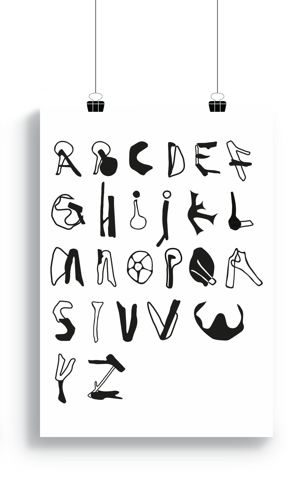 Typographie réalisée par des découpages et des collages provenants des formes grimpantes du Lierre.