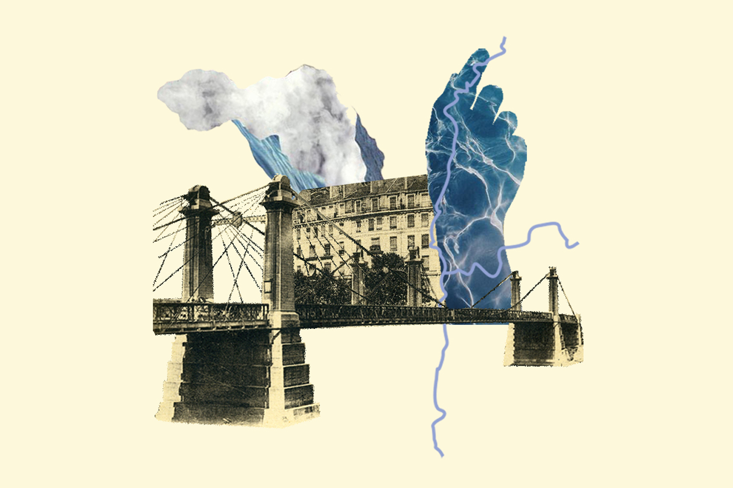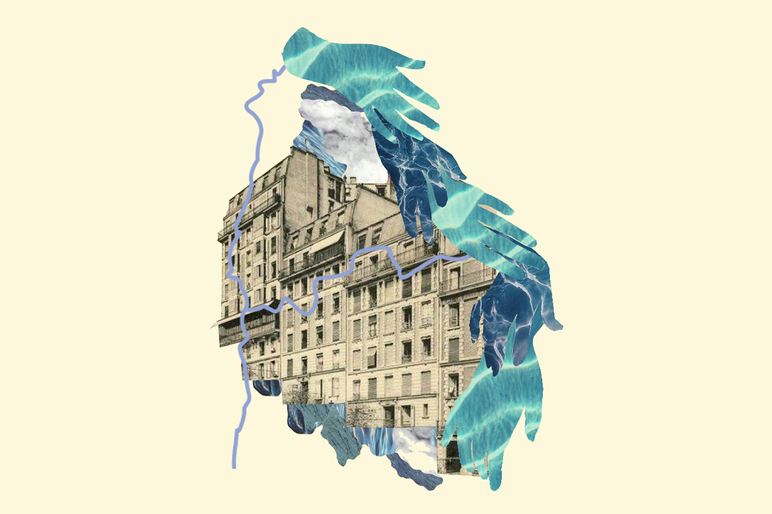 Réflexion et recherches graphiques de collage sur l’exposition 2019 de la biennale de Lyon. Ce paysage traversé et traversant est aussi celui d’un glissement qui marque l’apogée de l’âge industriel en Europe et son achèvement spéculatif au cours du XXIe siècle. Là où les eaux se mêlent est ainsi comme un paysage plissé où chaque vague et chaque crête, chaque variation, ouvre sur de nouvelles perspectives et mises en relation.