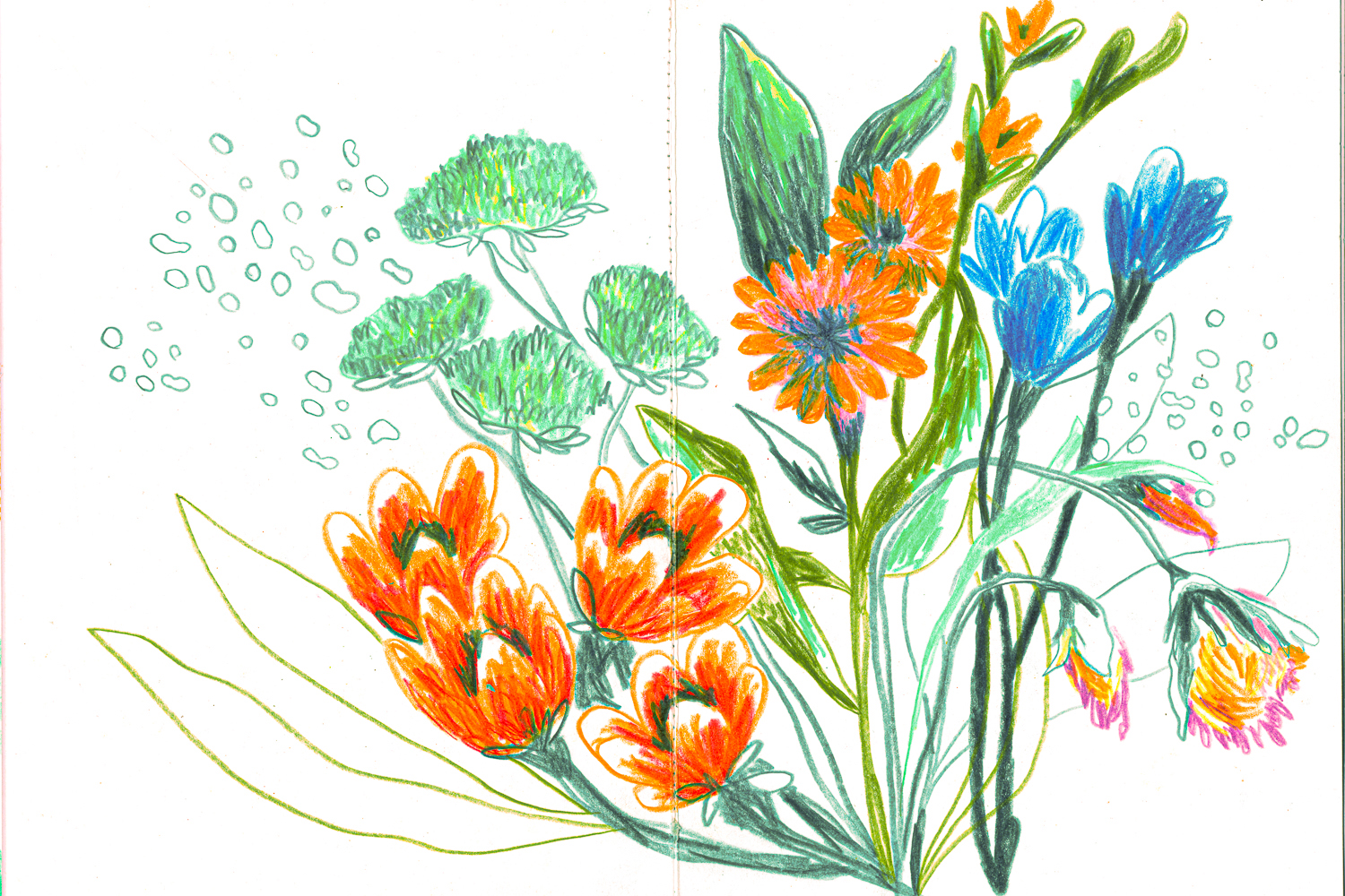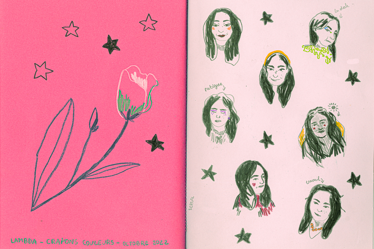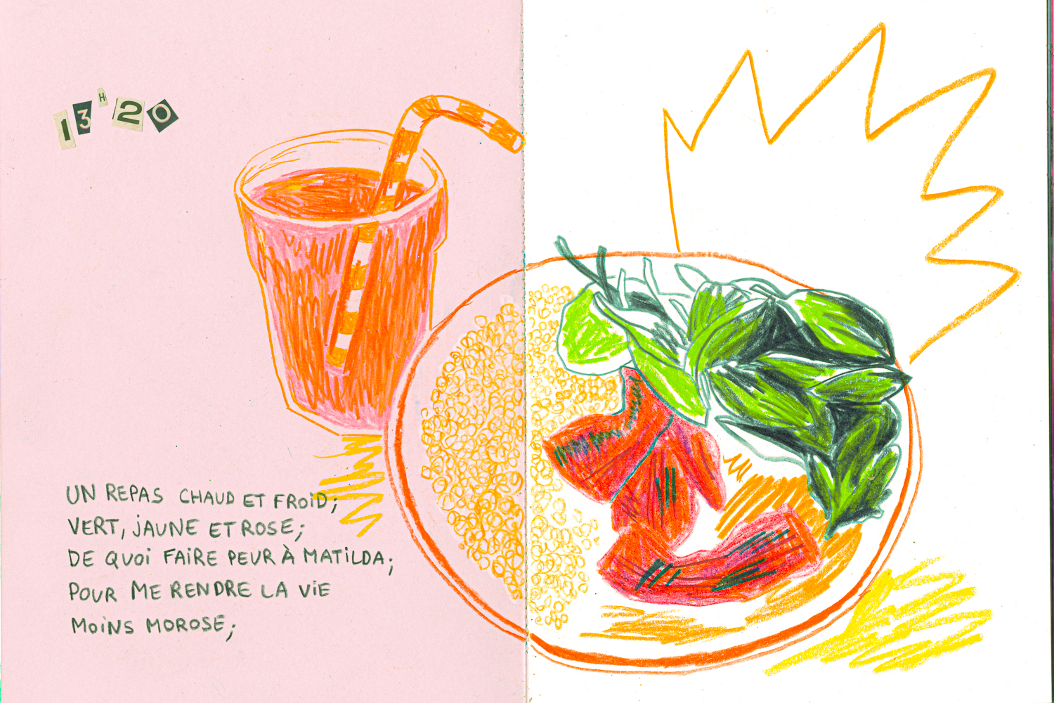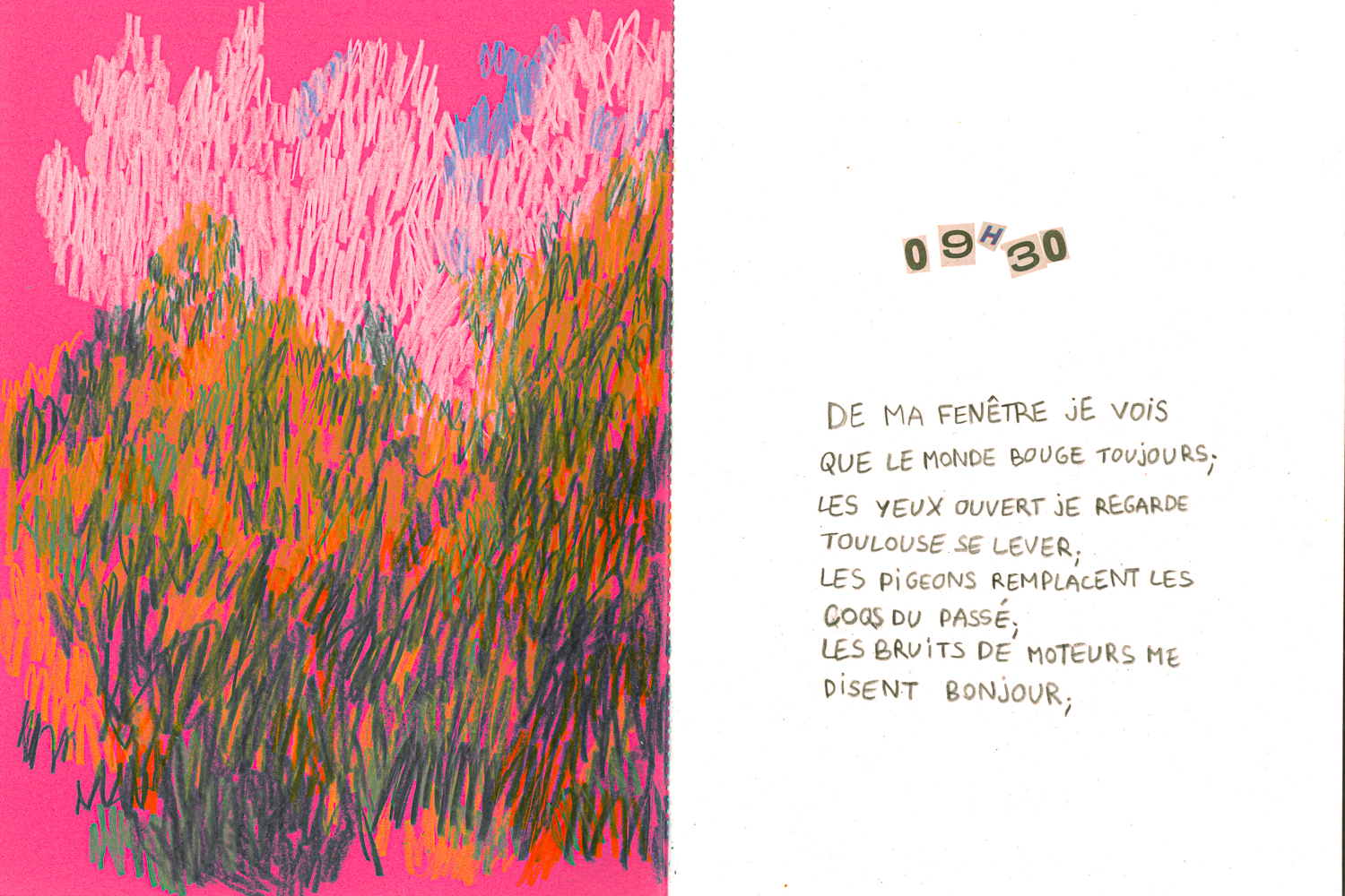 Conceptions de poèmes qui accompagnent des illustrations spontanées dans une relation texte image aux crayons de couleurs. Edition réalisée et reliée à la main sur des papiers variés.