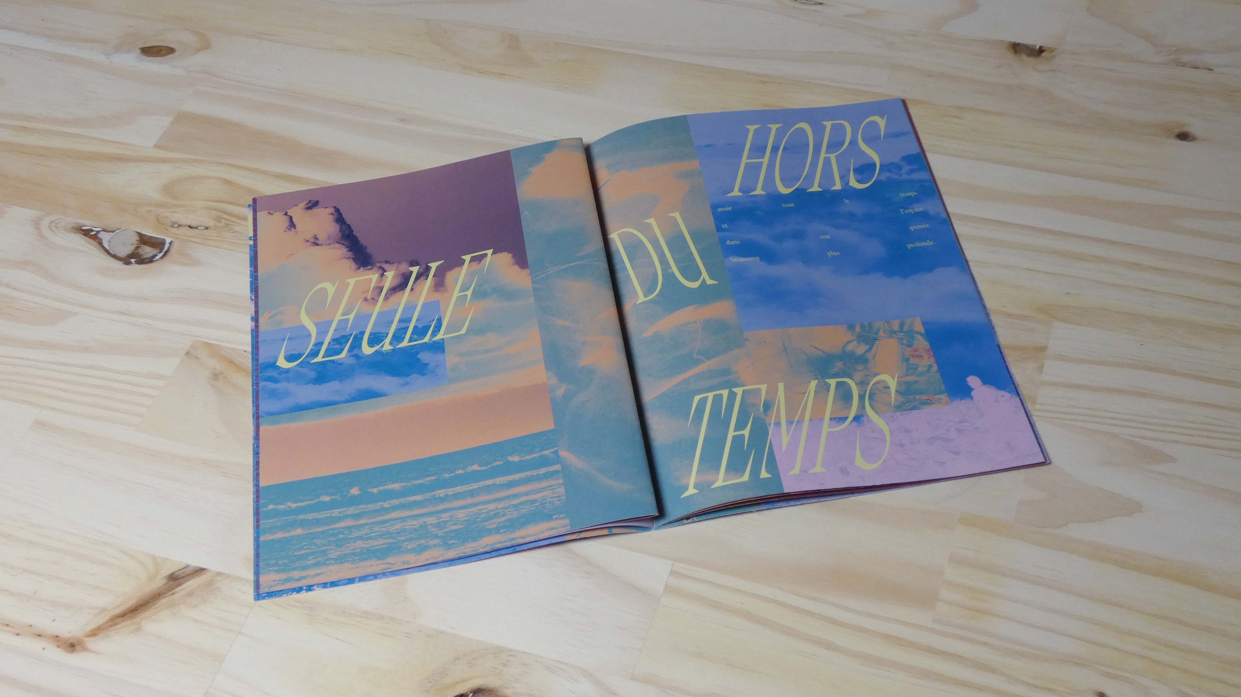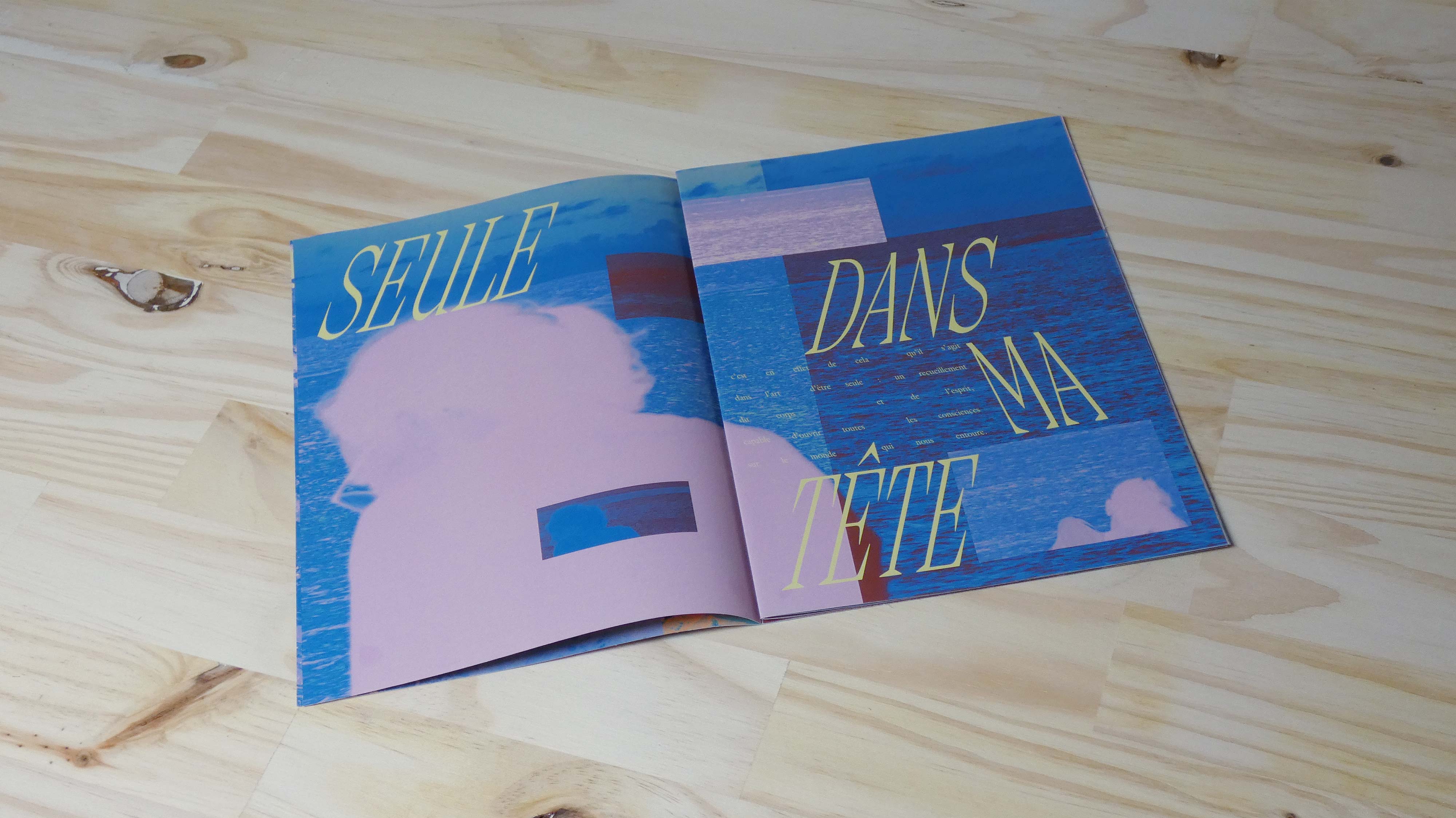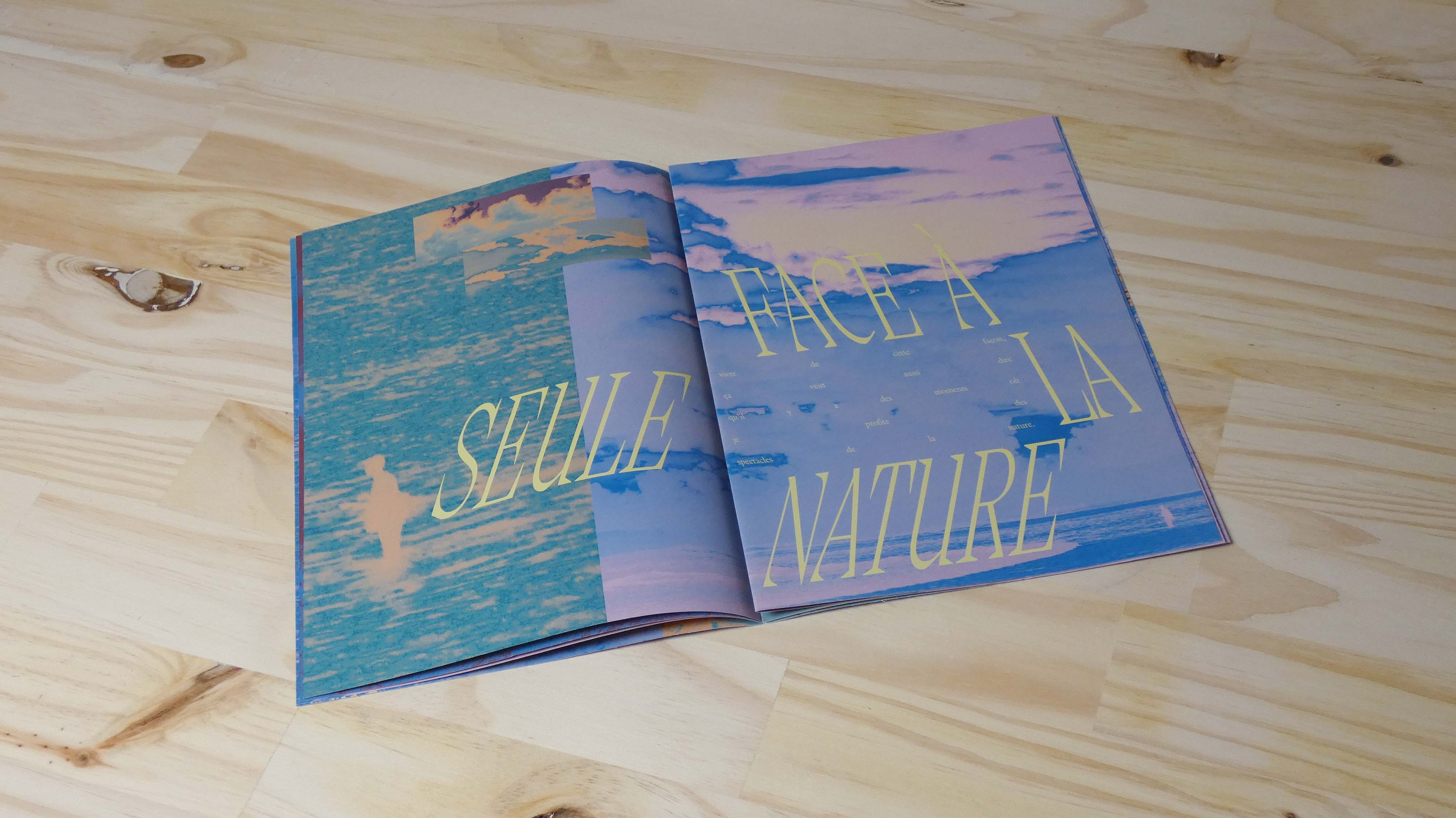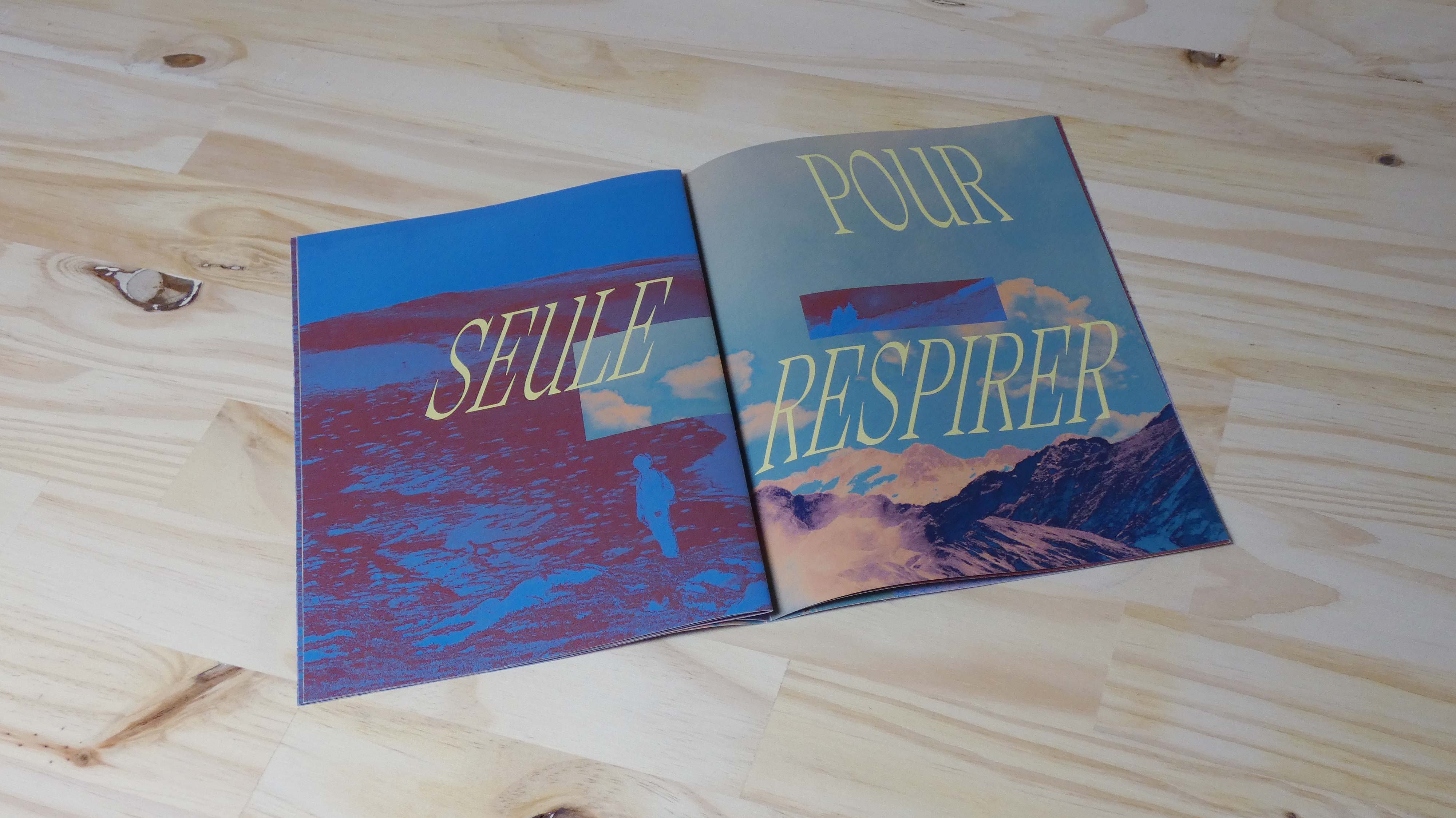 Cette édition amène le lecteur dans un récit où la solitude-plénitude est incarnée par une poésie visuelle. Ces cinq doubles pages non-assemblées proposent plusieurs possibilités de lecture, combinant les photographies et les gammes colorimétriques différemment. Chacun peut s’approprier l’expérience à sa manière.