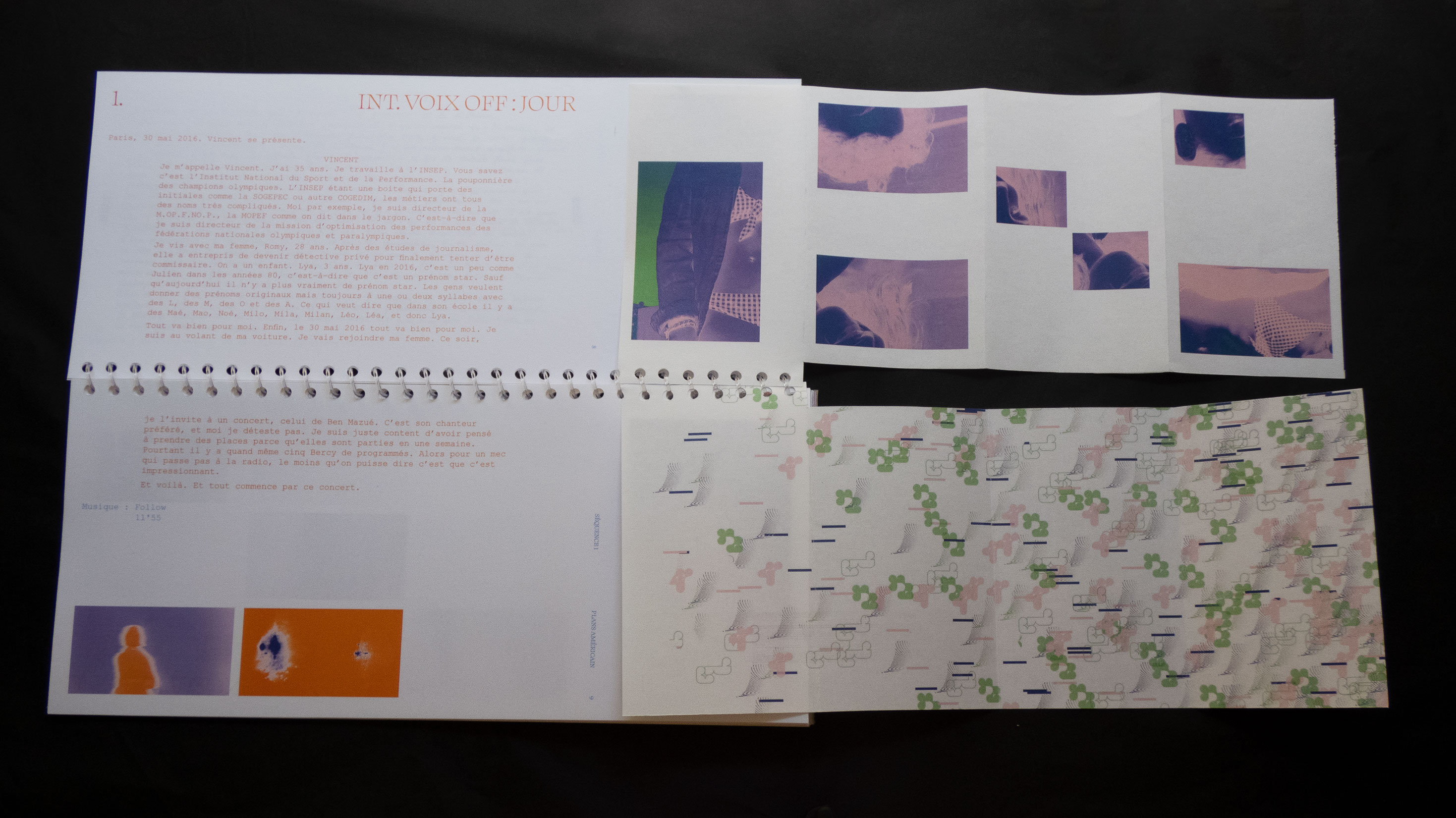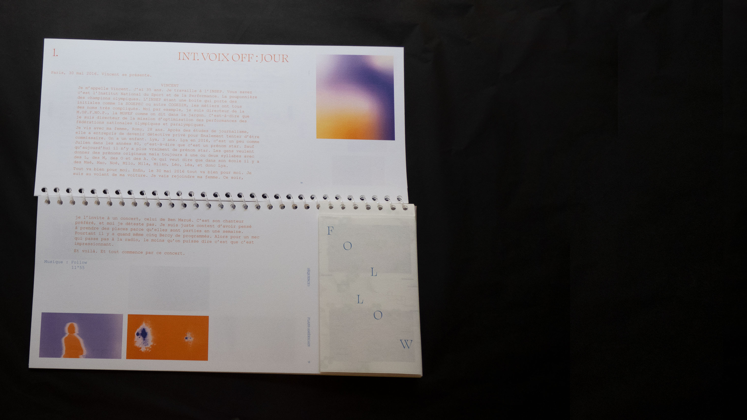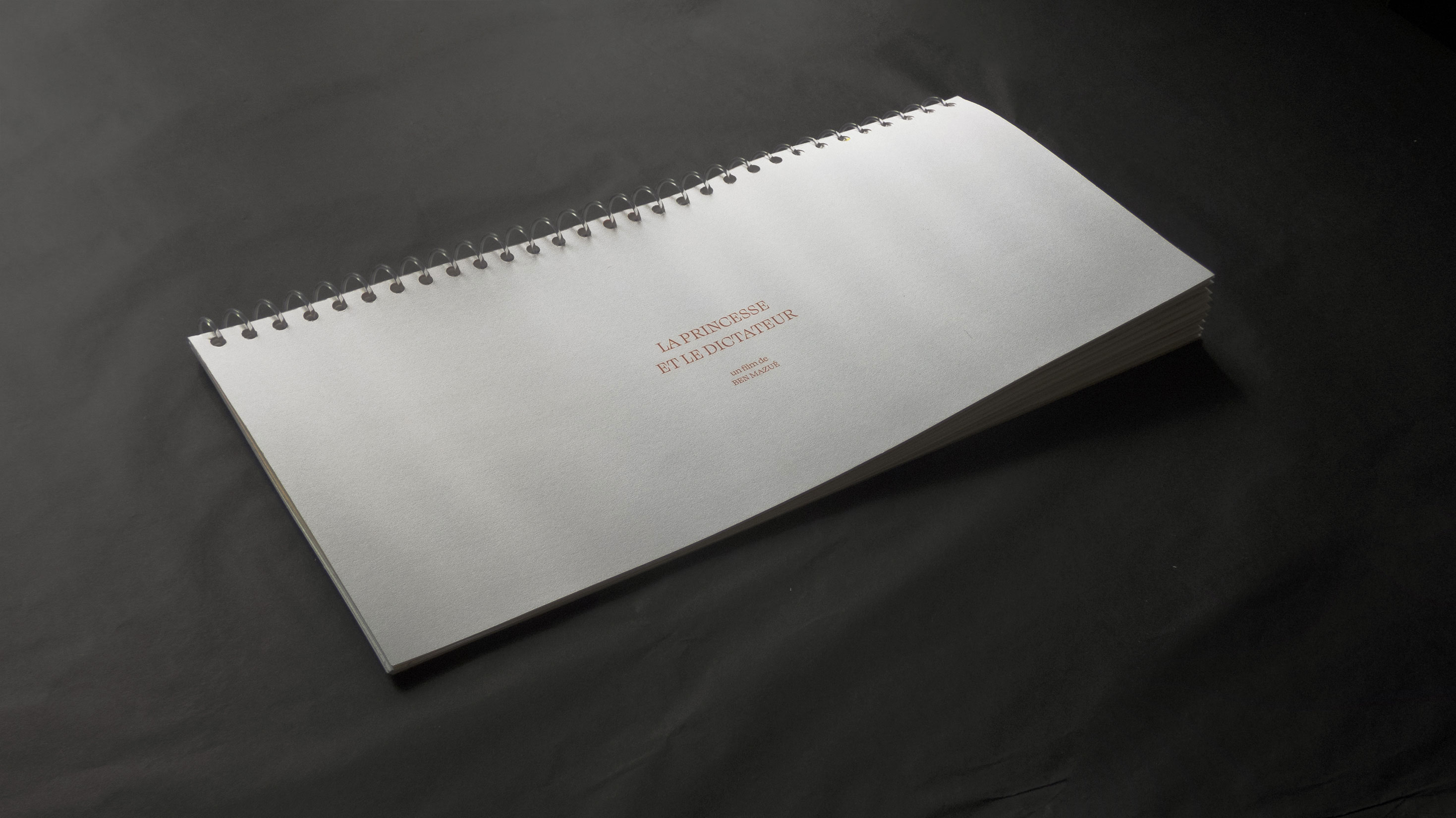 Mon projet de fin d’études s’oriente ainsi vers un croisement de ses trois disciplines : graphisme, cinéma et musique. Ce croisement se base à partir de l’audio du concert « La princesse et le dictateur » de Ben Mazué. Durant cet événement, celui-ci raconte le film qu’il a imaginé, jonglant entre narration et musiques. Le projet se l’approprie en proposant une forme éditoriale non-standard, basée sur des caractéristiques cinématographiques et musicales.