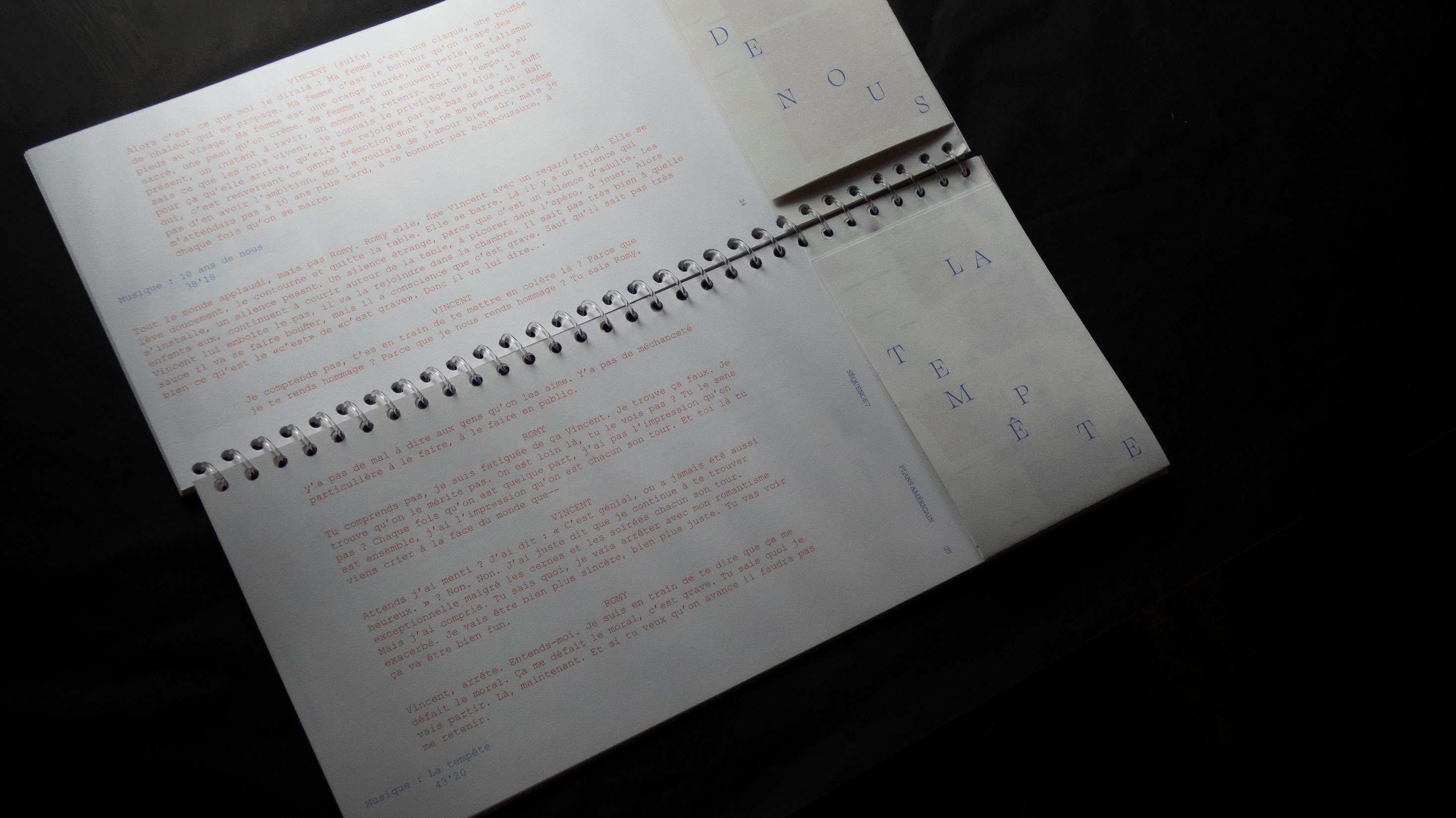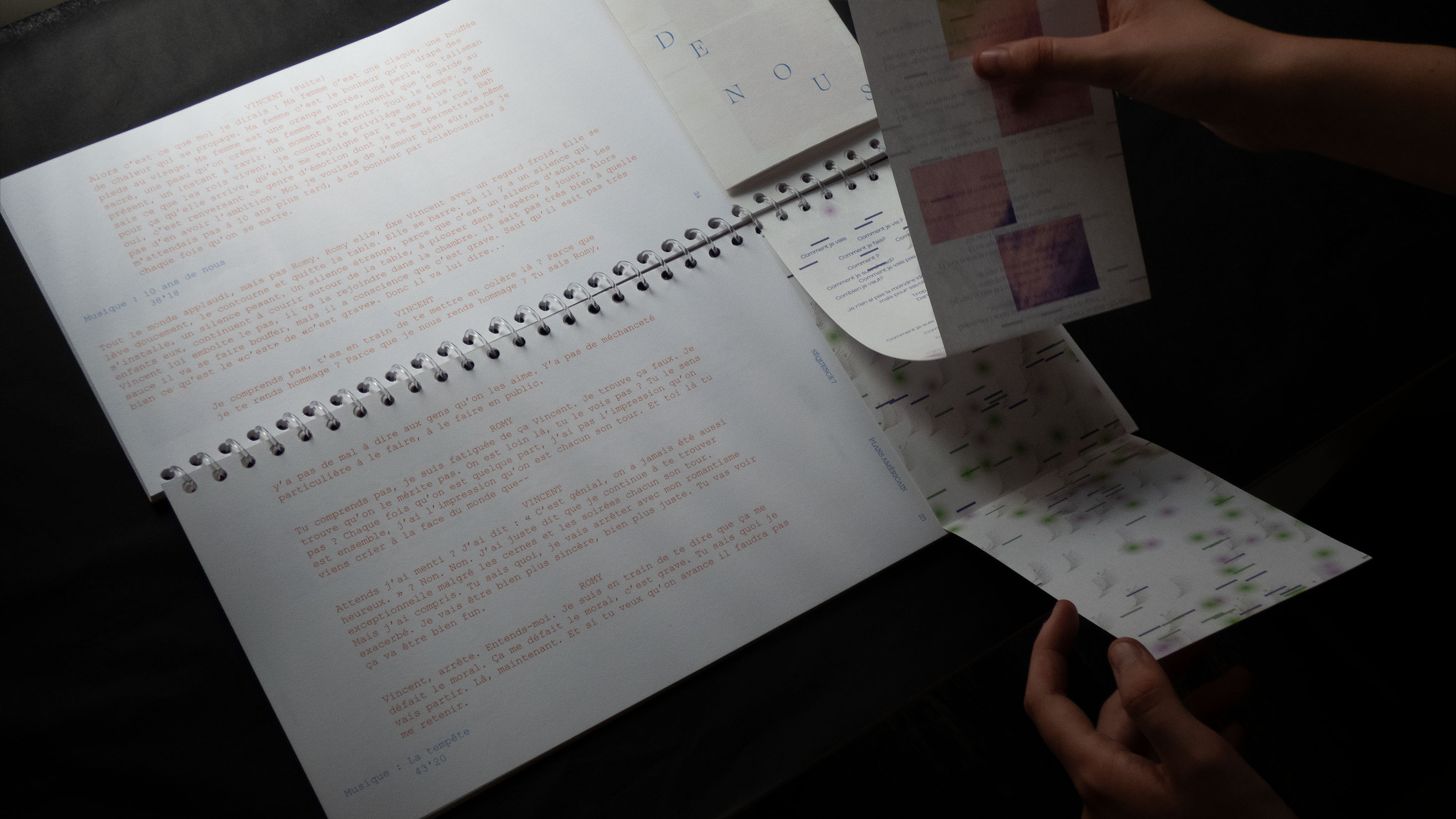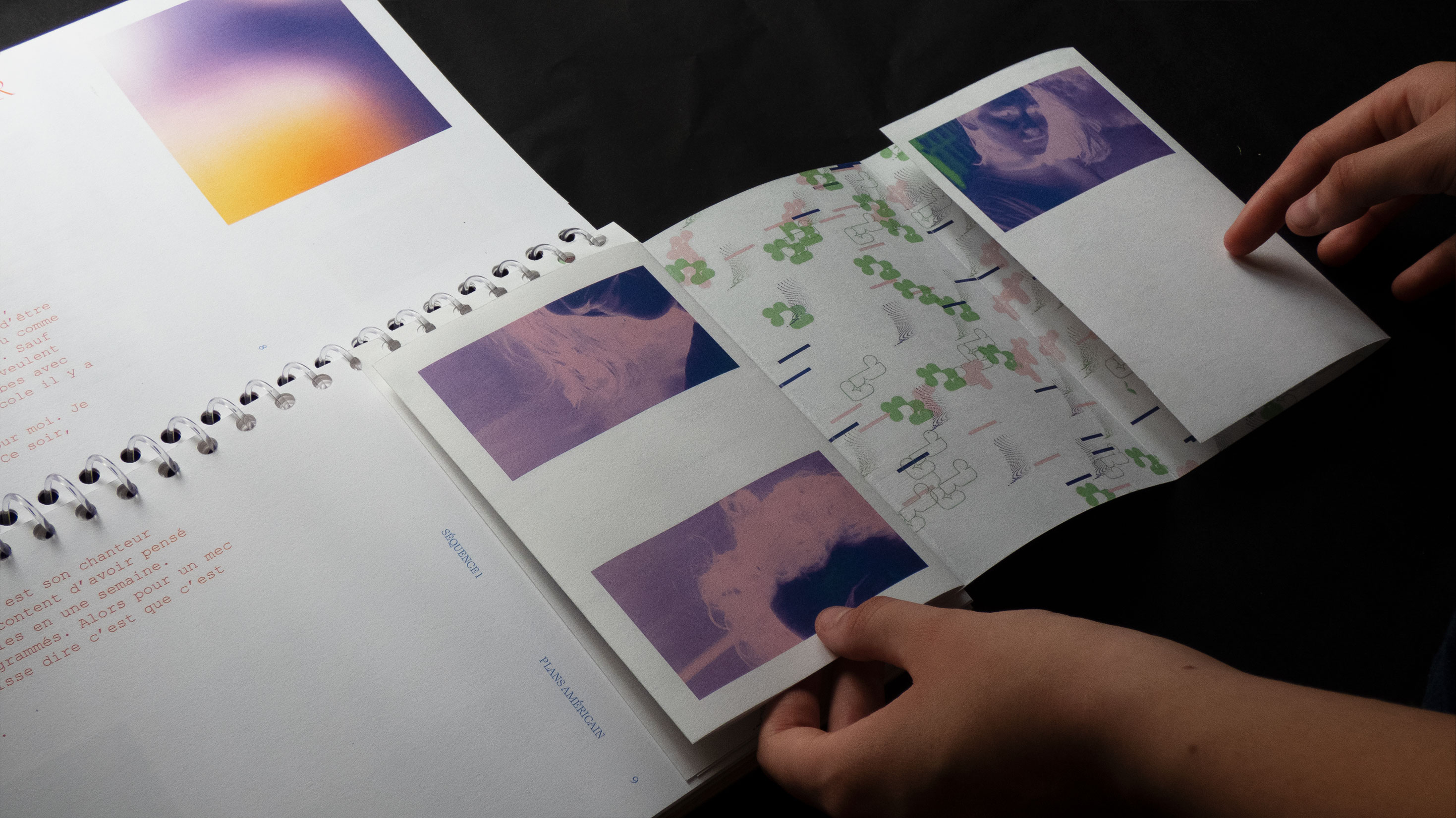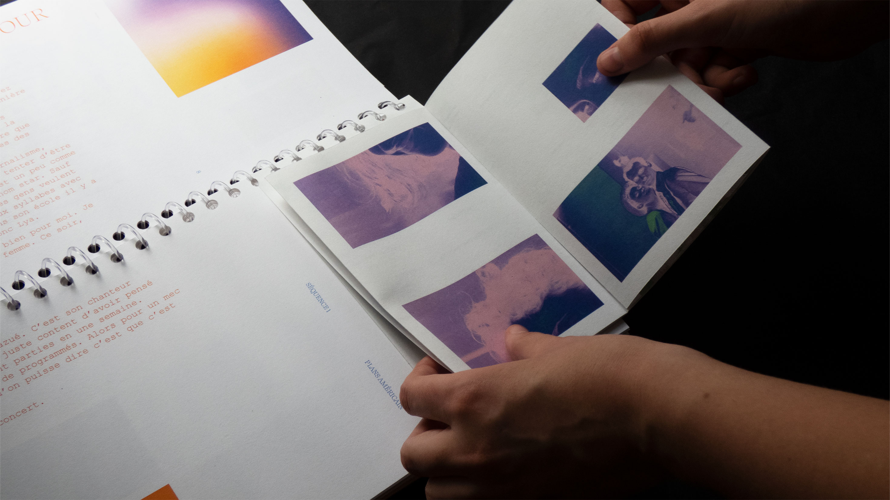 Mon projet de fin d’études s’oriente ainsi vers un croisement de ses trois disciplines : graphisme, cinéma et musique. Ce croisement se base à partir de l’audio du concert « La princesse et le dictateur » de Ben Mazué. Durant cet événement, celui-ci raconte le film qu’il a imaginé, jonglant entre narration et musiques. Le projet se l’approprie en proposant une forme éditoriale non-standard, basée sur des caractéristiques cinématographiques et musicales.