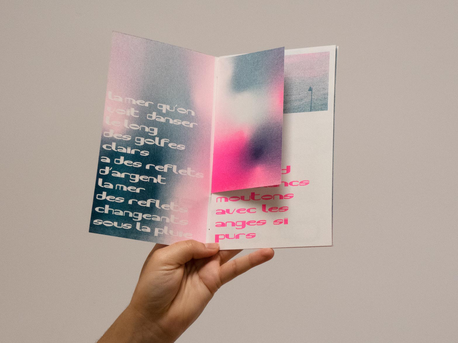 *projet précédent : kouaa typo*. au travers des paroles de la chanson « La mer » de Charles Trenet. Réalisé durant mon stage en Espagne au sein du studio Los Patos, j’ai profité des nombreuses photos prises de l’océan durant le séjour, pour les faire dialoguer avec le texte. Cette confrontation photo-typo apporte un fort contraste aux visuels et créée une composition poétique.