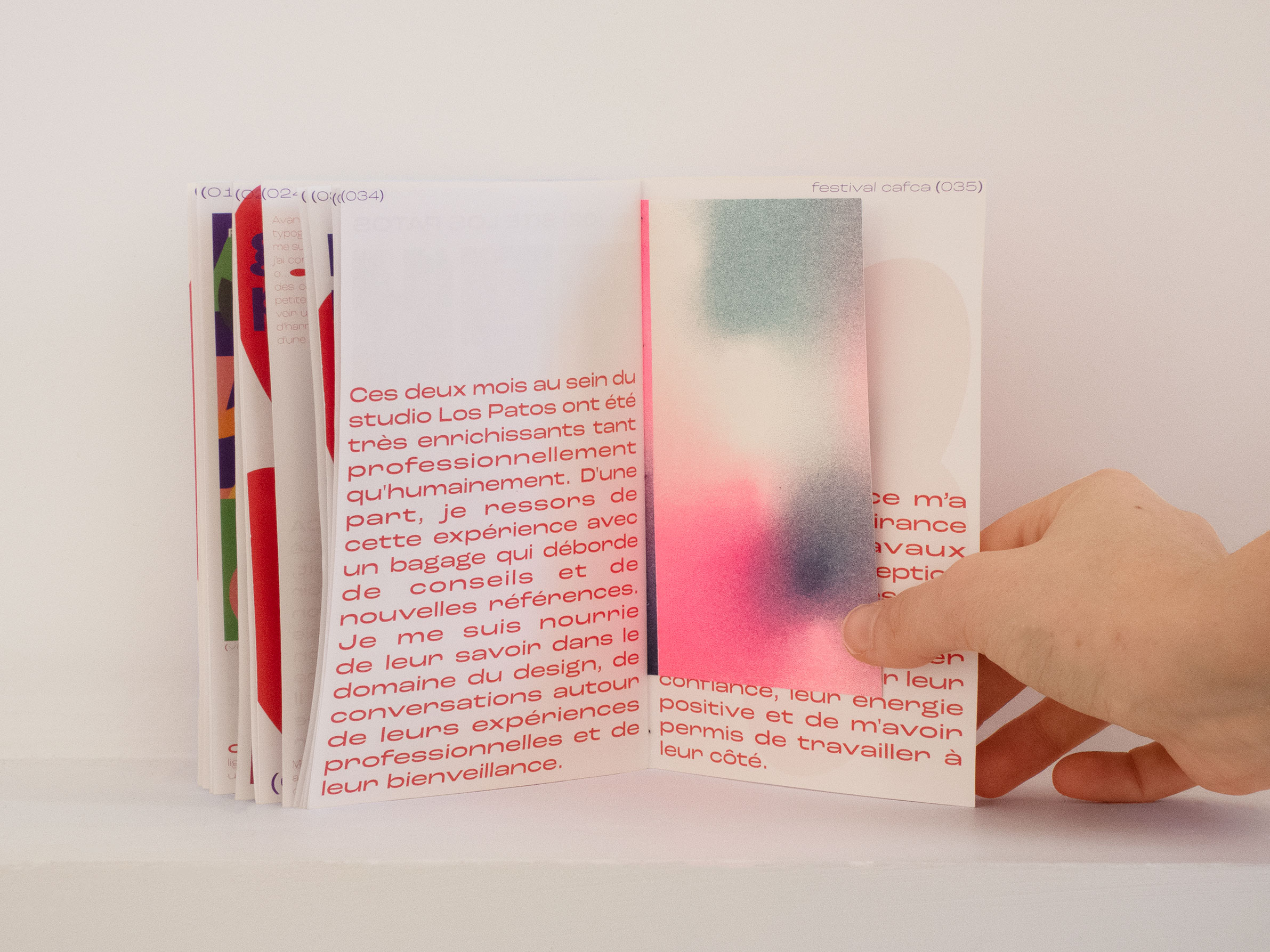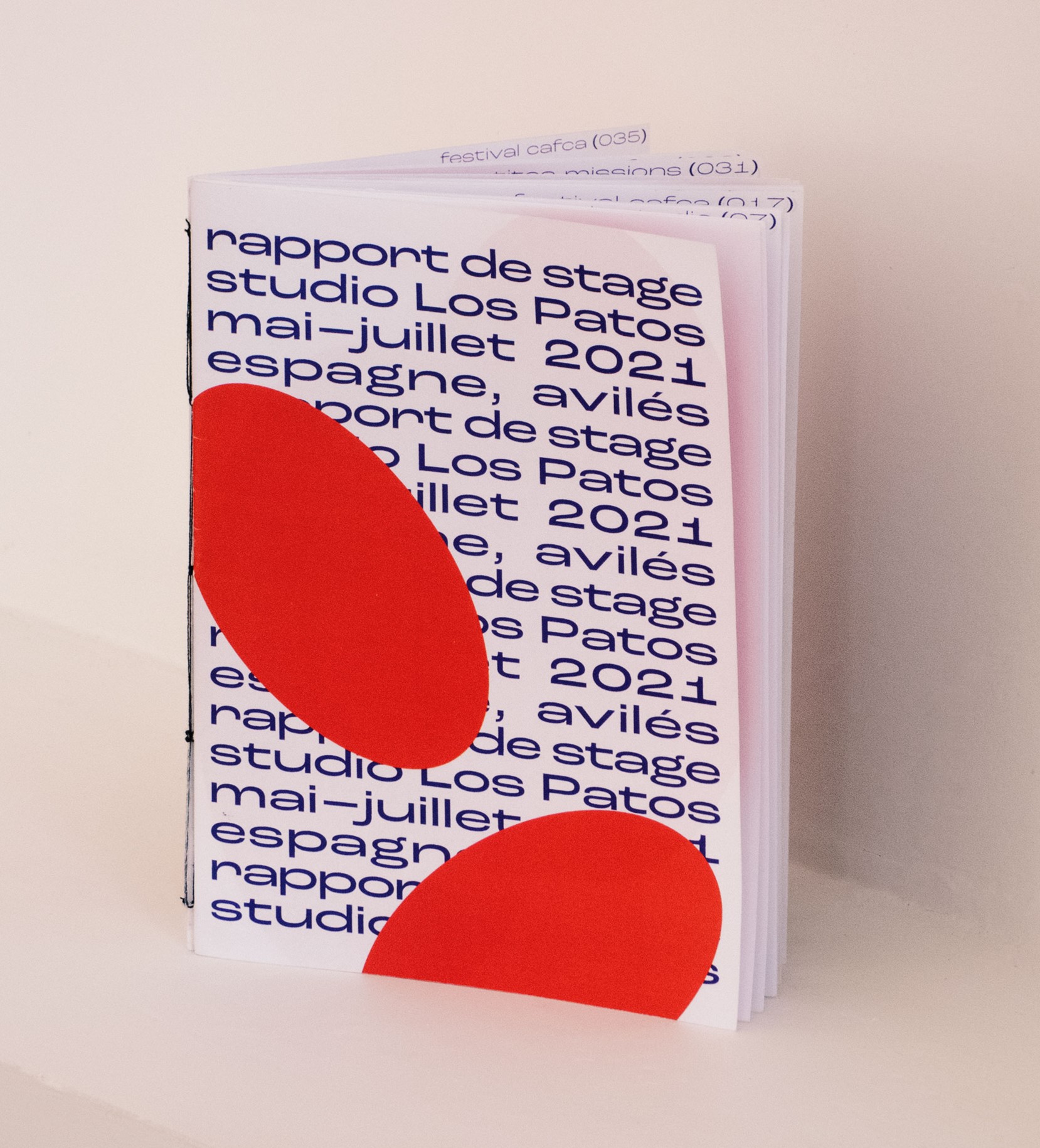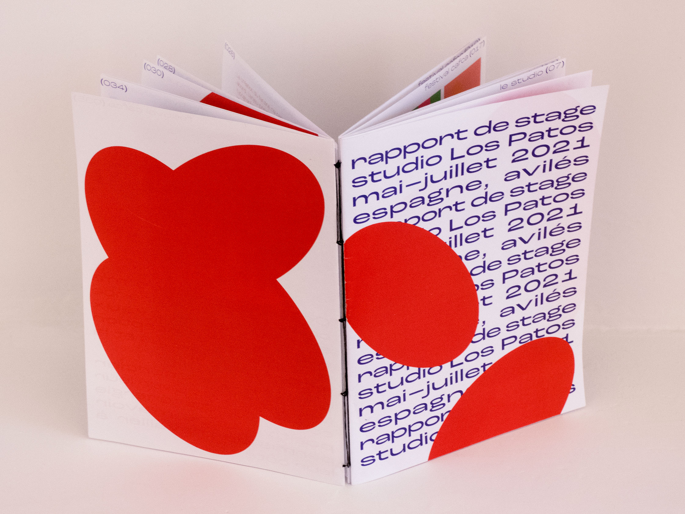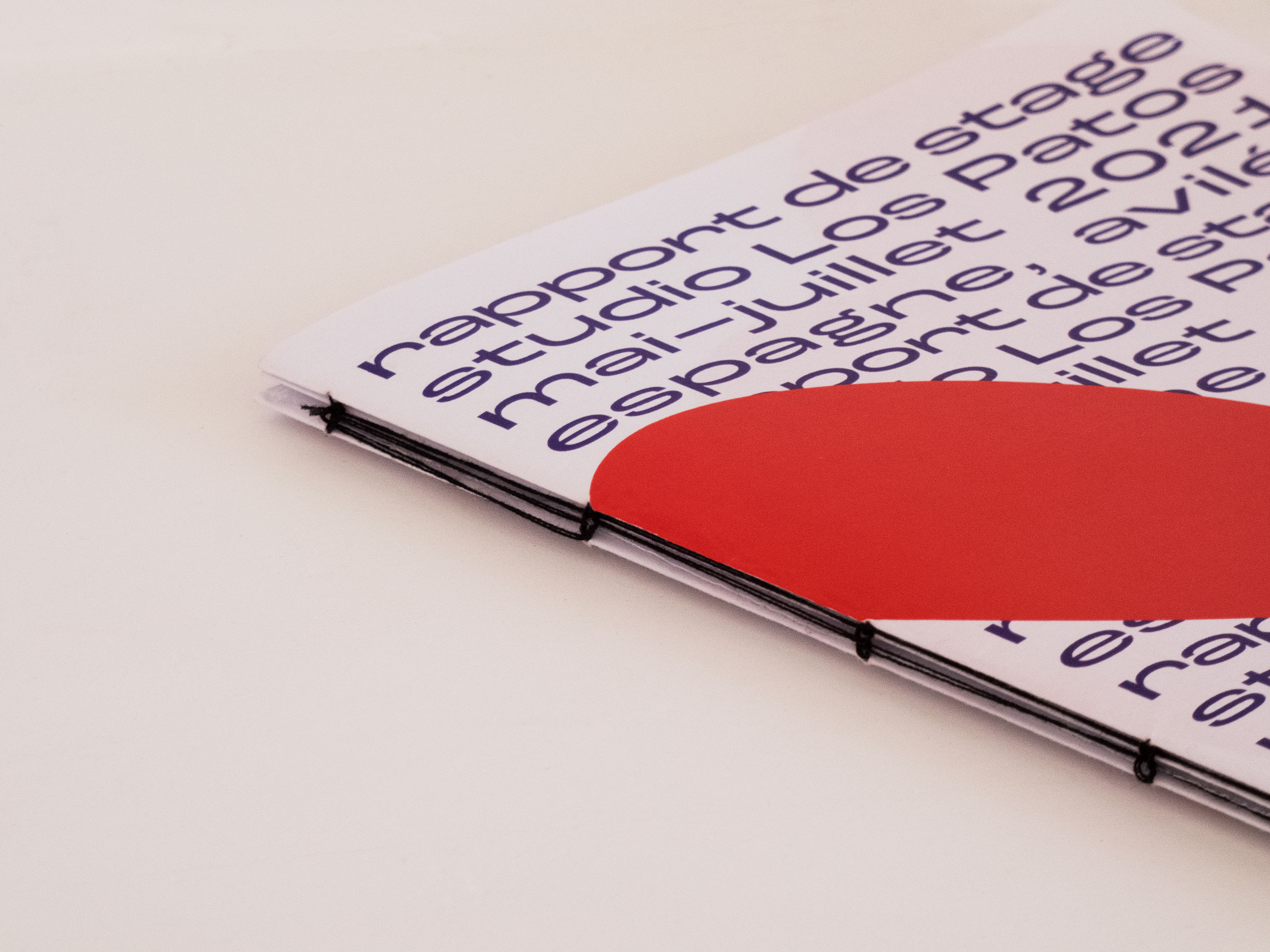 Rendu sous forme éditoriale du rapport de stage. Ce stage professionnel a été effectué au studio Los Patos, en Espagne durant 10 semaines. Livrets assemblés par une reliure copte.
