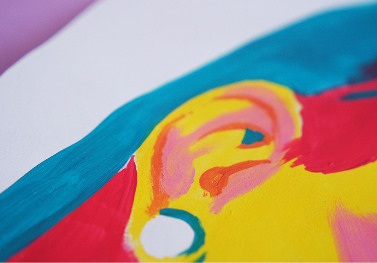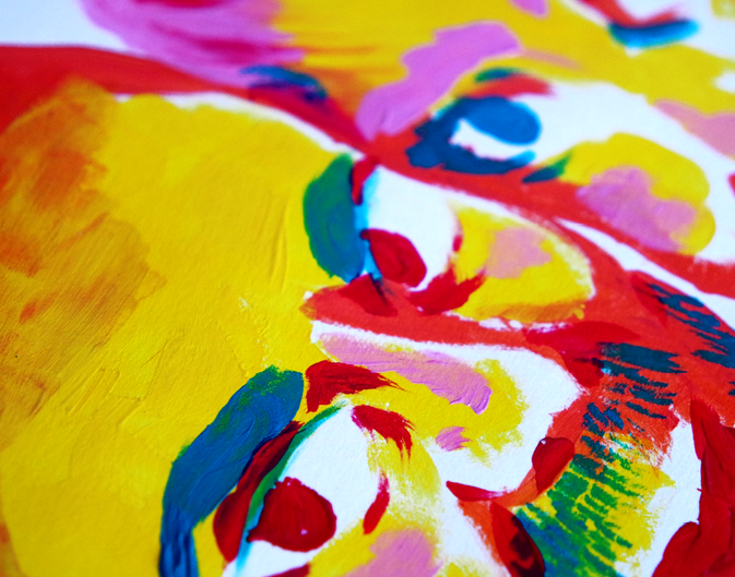 L'atelier consistait à se composer une palette de couleurs au fil des séances pour interpréter des photos projetées en noir et blanc en peinture. J'ai fait en sorte d'avoir dans ma palette des couleurs qui vibrent entre elles et d'autres qui se confondent pour jouer sur les effets de contraste.