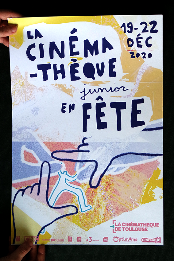Proposition d'une communication visuelle pour la Cinémathèque de Toulouse. Mettre en avant le cinéma et les ateliers manuels proposés à l'occasion de ce festival jeunesse.