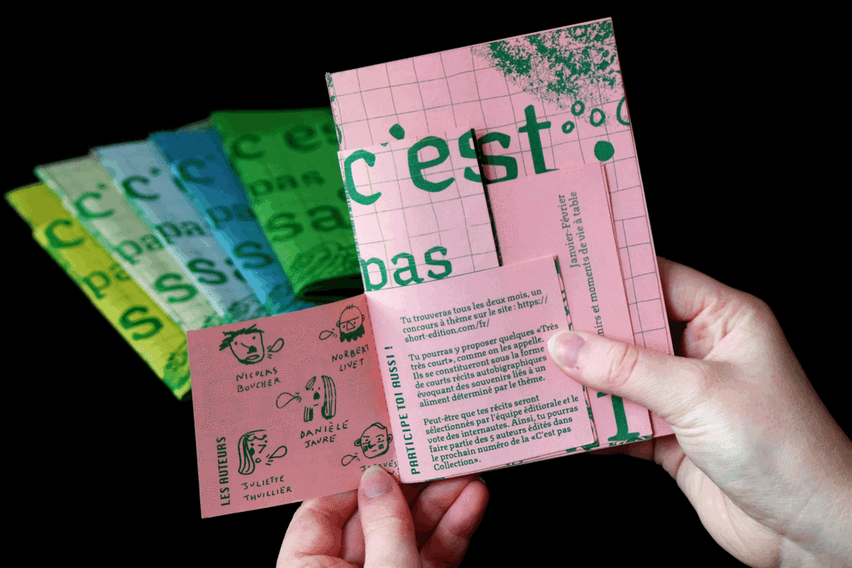Collection fictive pour Short Édition. Un numéro publié tous les deux mois suite à un concours. Les amateurs de littérature proposent de courts récits présentant leurs souvenirs autour du repas.