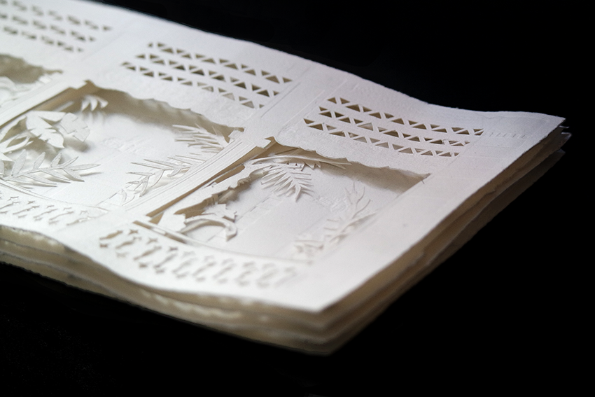 Mise en valeur de la finesse et de la délicatesse de l’architecture dentelée ainsi que de la végétation luxuriante à travers la découpe et l’embossage.