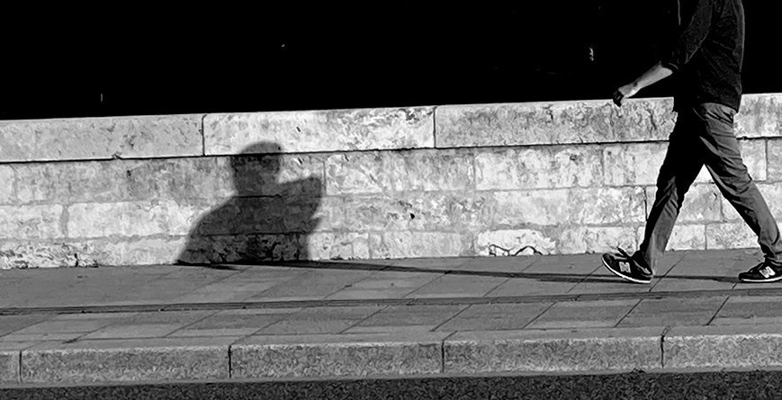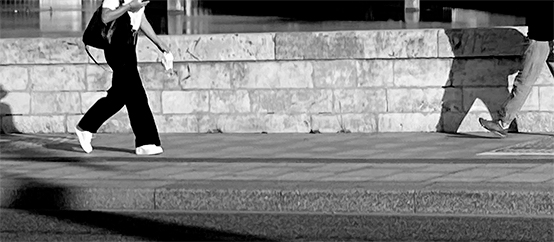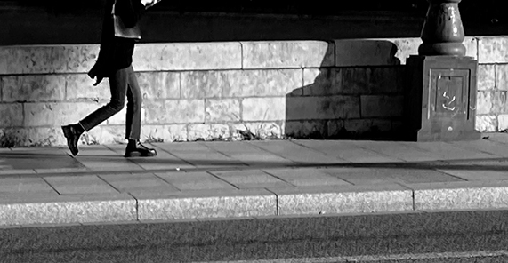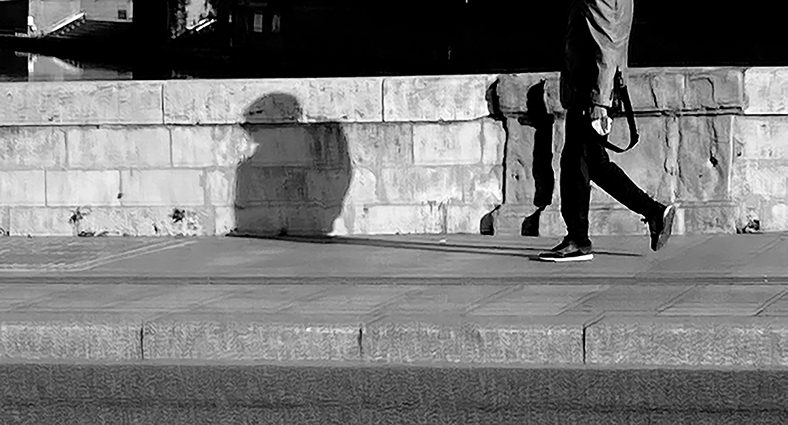 On suit son ombre, se laisse suivre par son ombre,que l’on ne croise jamais. La trajectoire est linéaire, On traverse le fleuve, en suspens entre deux terres, le vent se lève, les drapeaux s'animent, les voitures accélèrent. Les pas sont muets,n’arrivent pas à élever leur voix. |