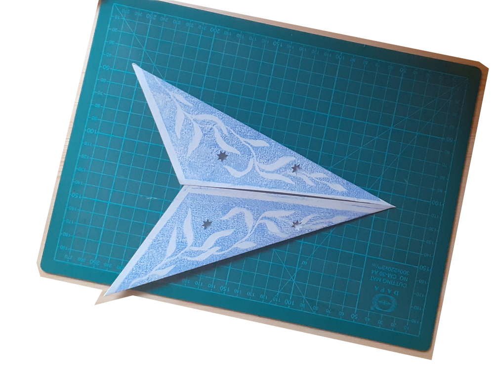 Etoile de Noël en papier, décor imprimé à la linogravure.