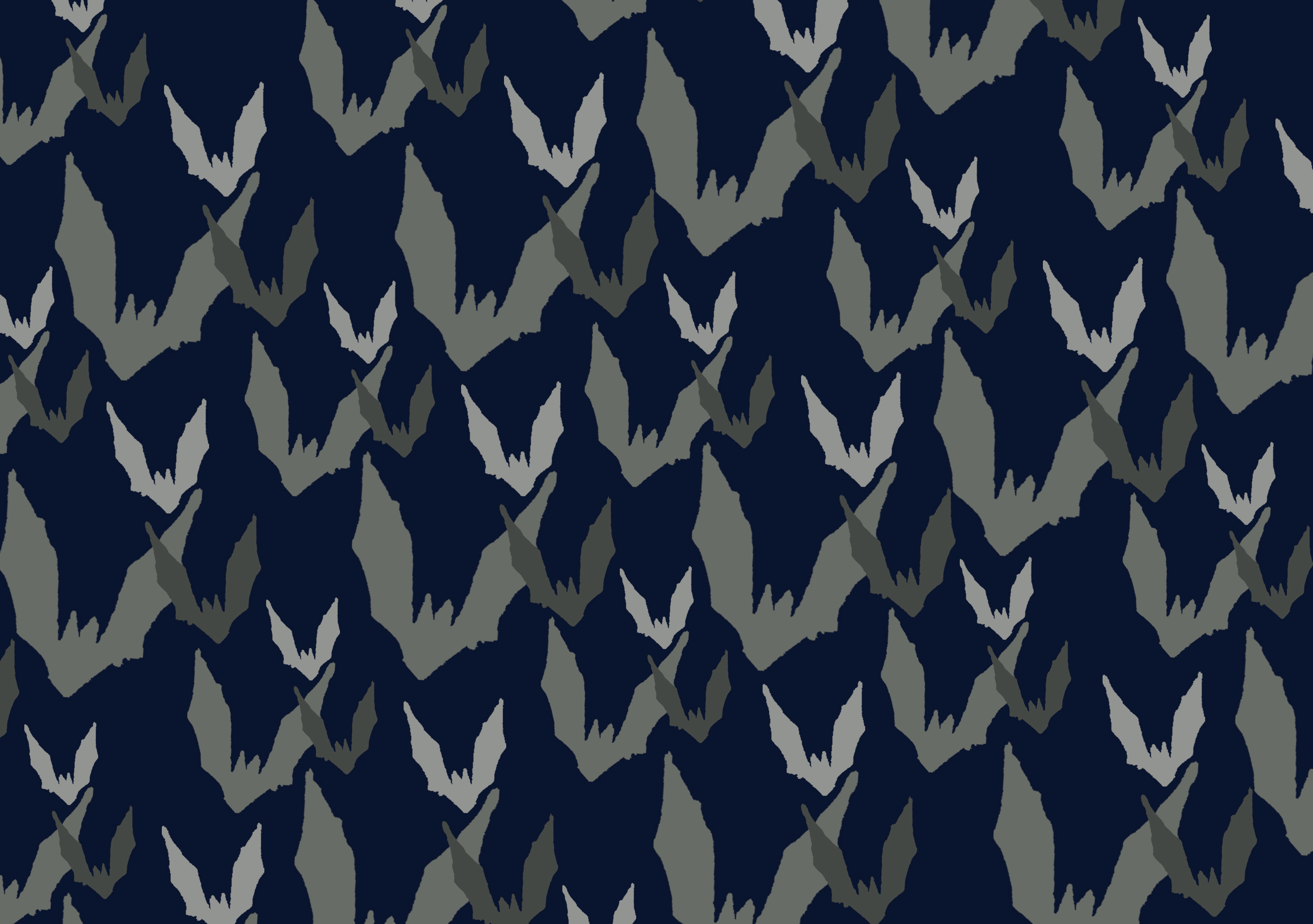 Ce projet a pour but de promouvoir un événement international : la 25ème nuit de la chauve-souris. Après diverses recherches autour du mammifère qu’est la chauve-souris, il a fallu communiquer l’événement afin de rendre compte des enjeux de celui-ci : faire découvrir à un large public la biologie, le mode de vie, les menaces, … ✺ Pour cela, j’ai confectionné un motif en all over en utilisant la technique de la tampographie afin de rendre un hommage aux chiroptères. ✺