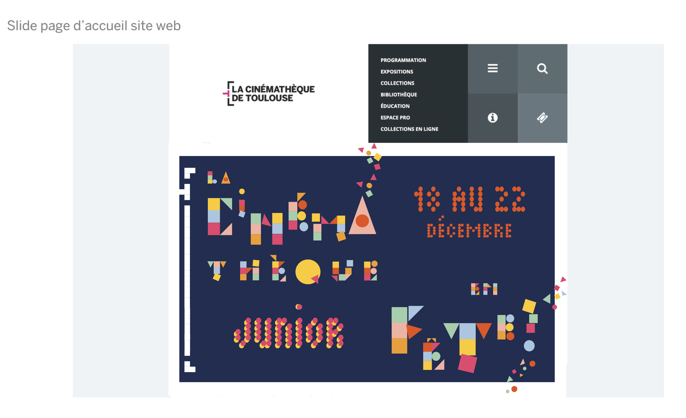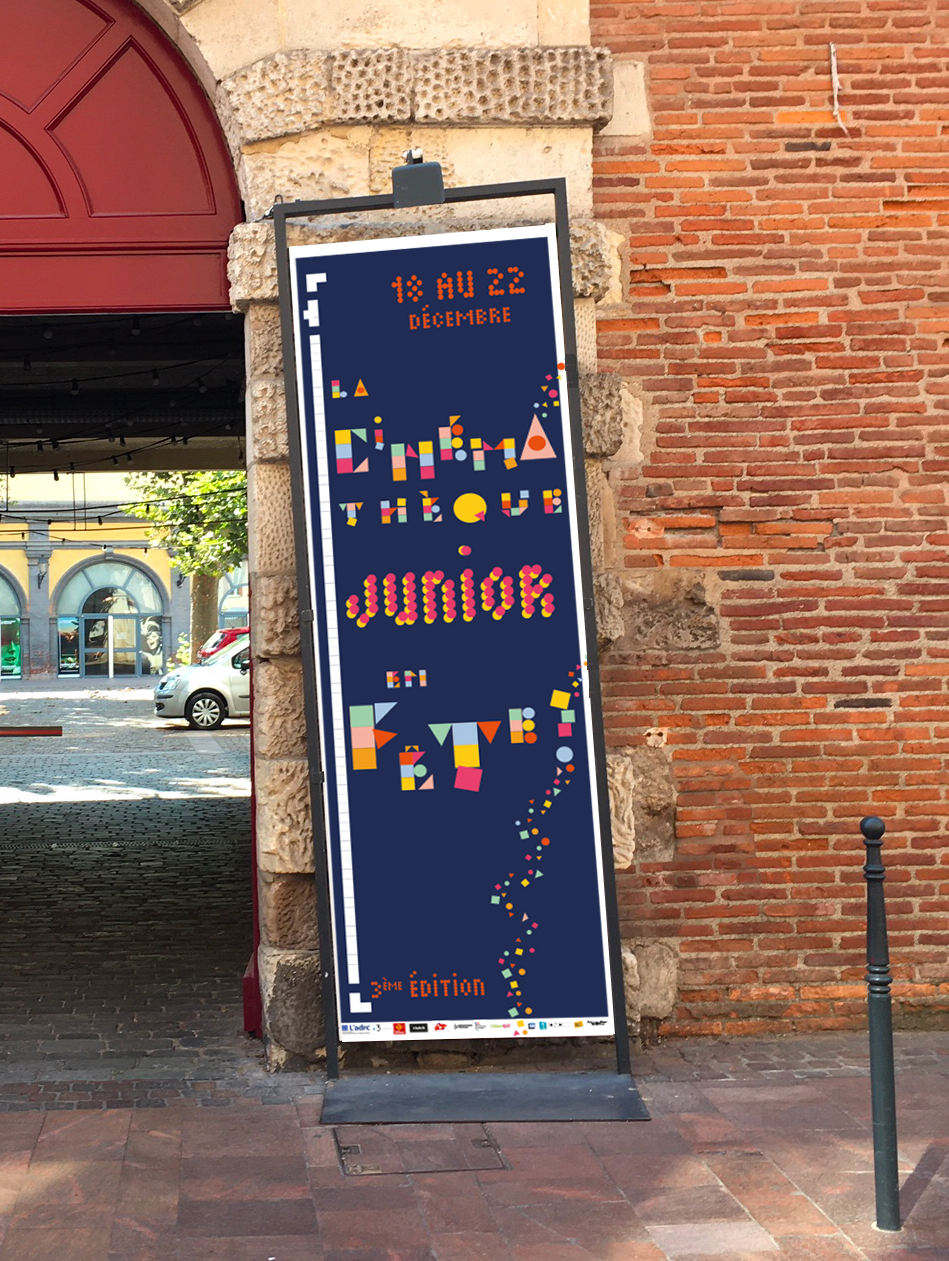 Dans le cadre d’un partenariat, la cinémathèque de Toulouse nous à demandé de concevoir l’identité d’un évènement « la cinémathèque junior en fête ! ».