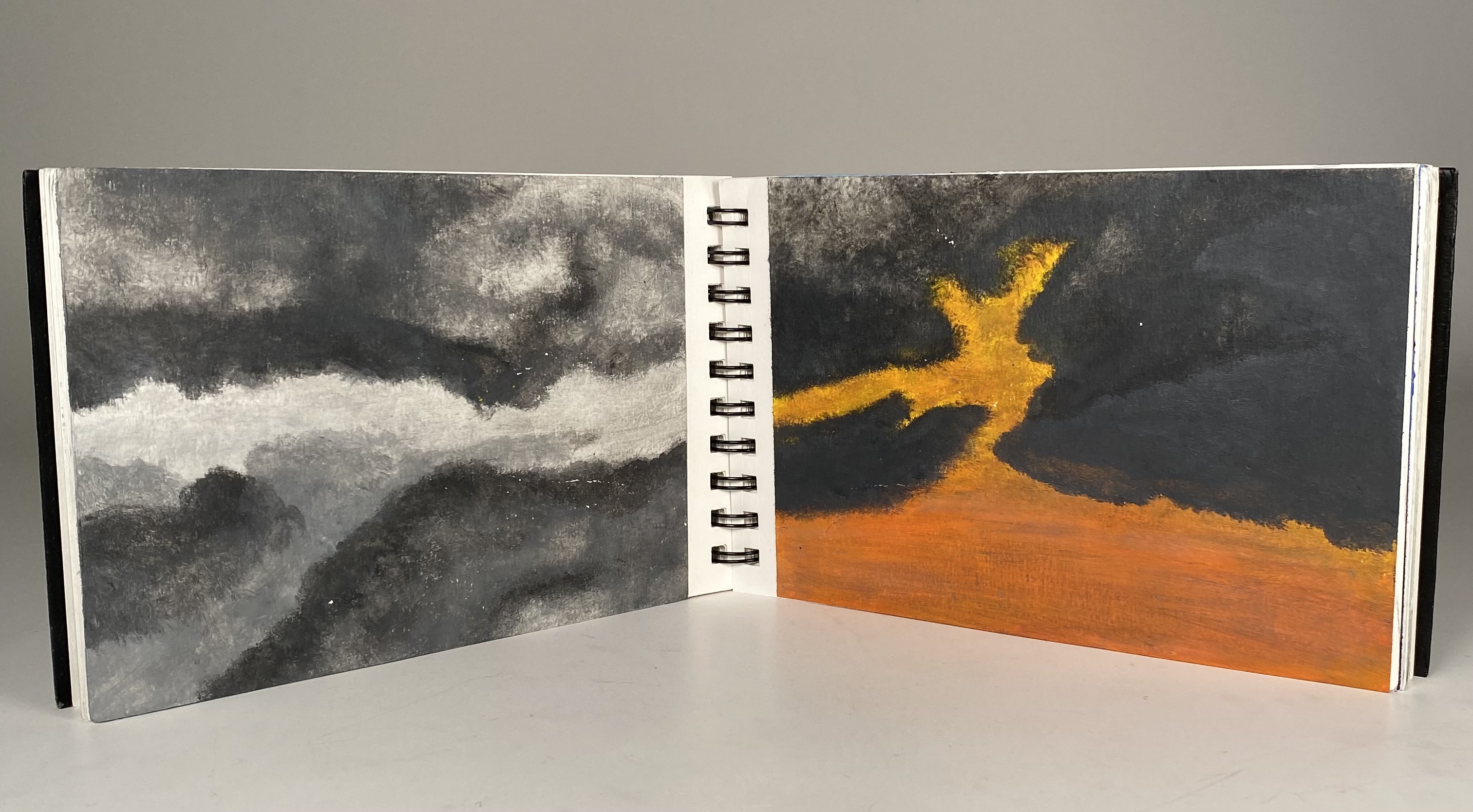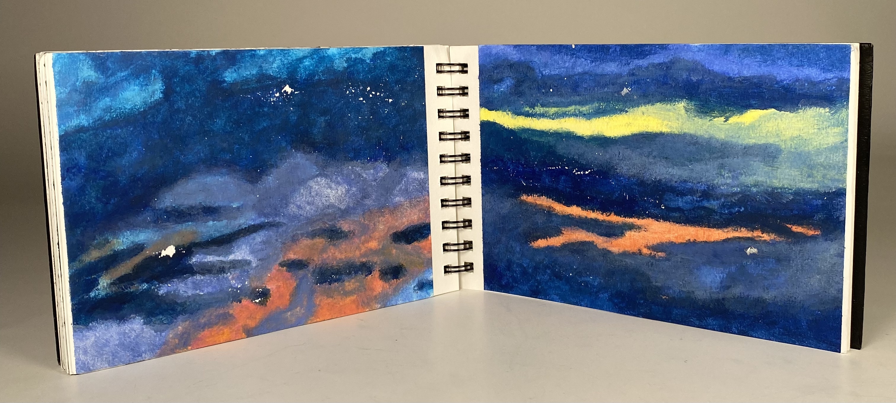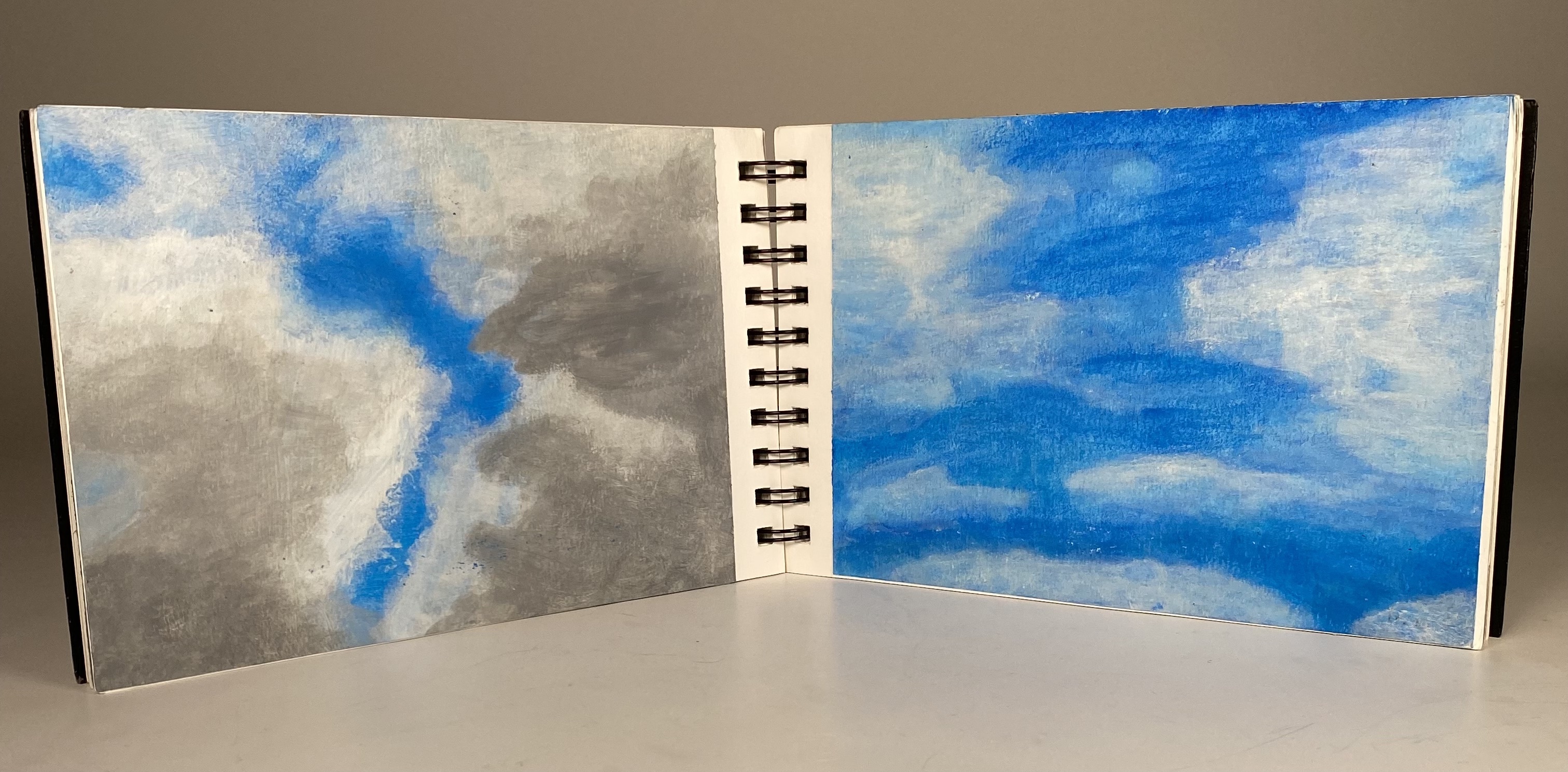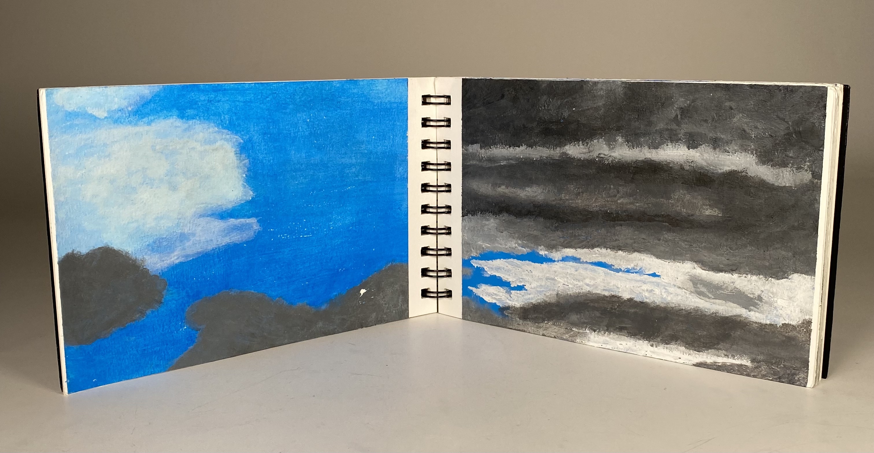 C’est donc pour cela que j’ai voulu capturer ces instants en utilisant différents médiums comme l’aquarelle, le fusain la peinture ou le crayon pour voir les différents effets qu’ils pouvaient produire afin de capturer les variations du ciel.