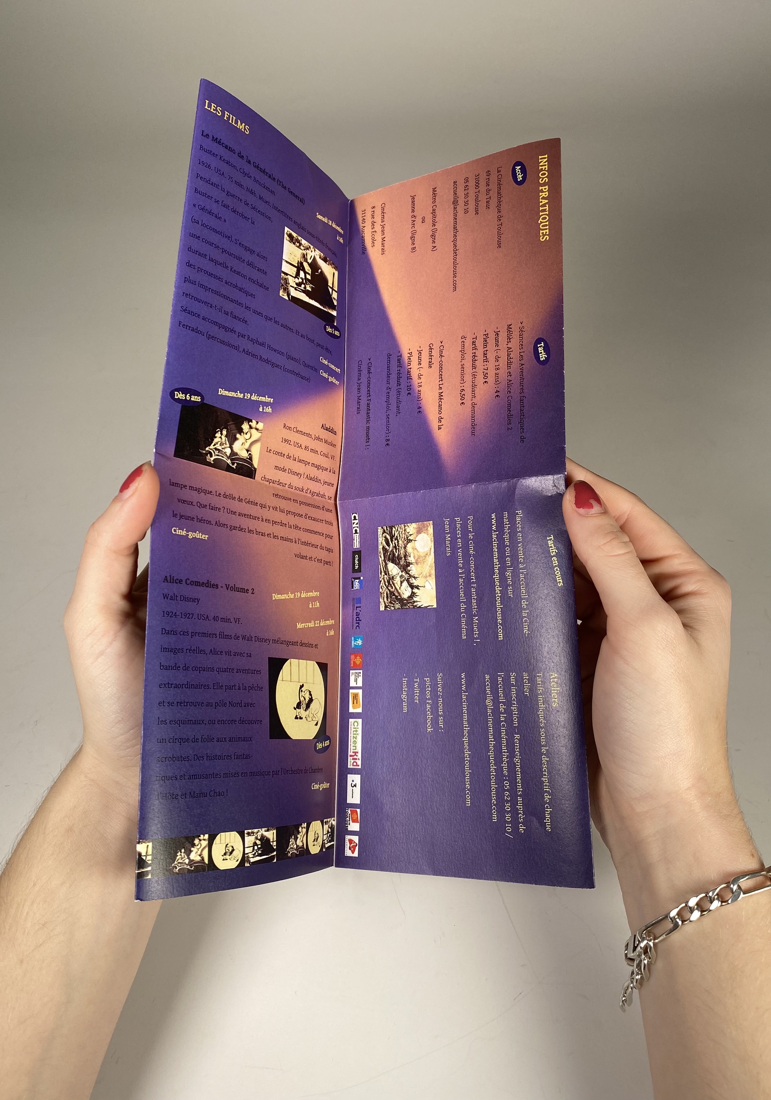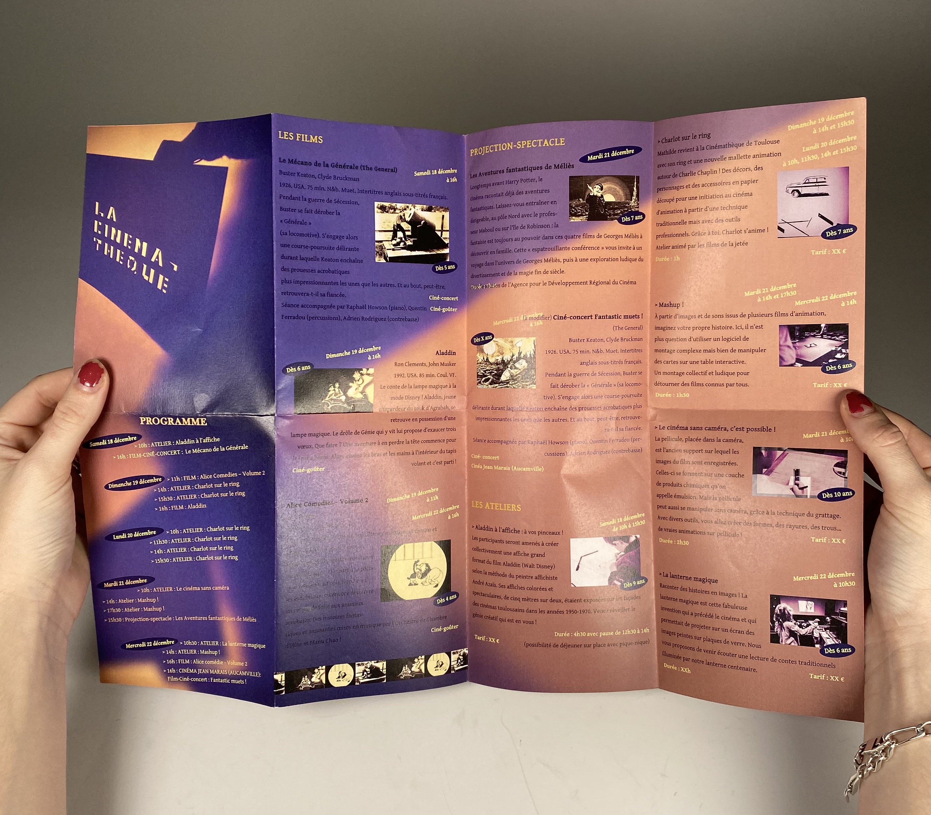 Retranscrire l’idée de cinéma, des ateliers et des enfants dans l’affiche, les flyers, le kakemono et les deux adhésifs.