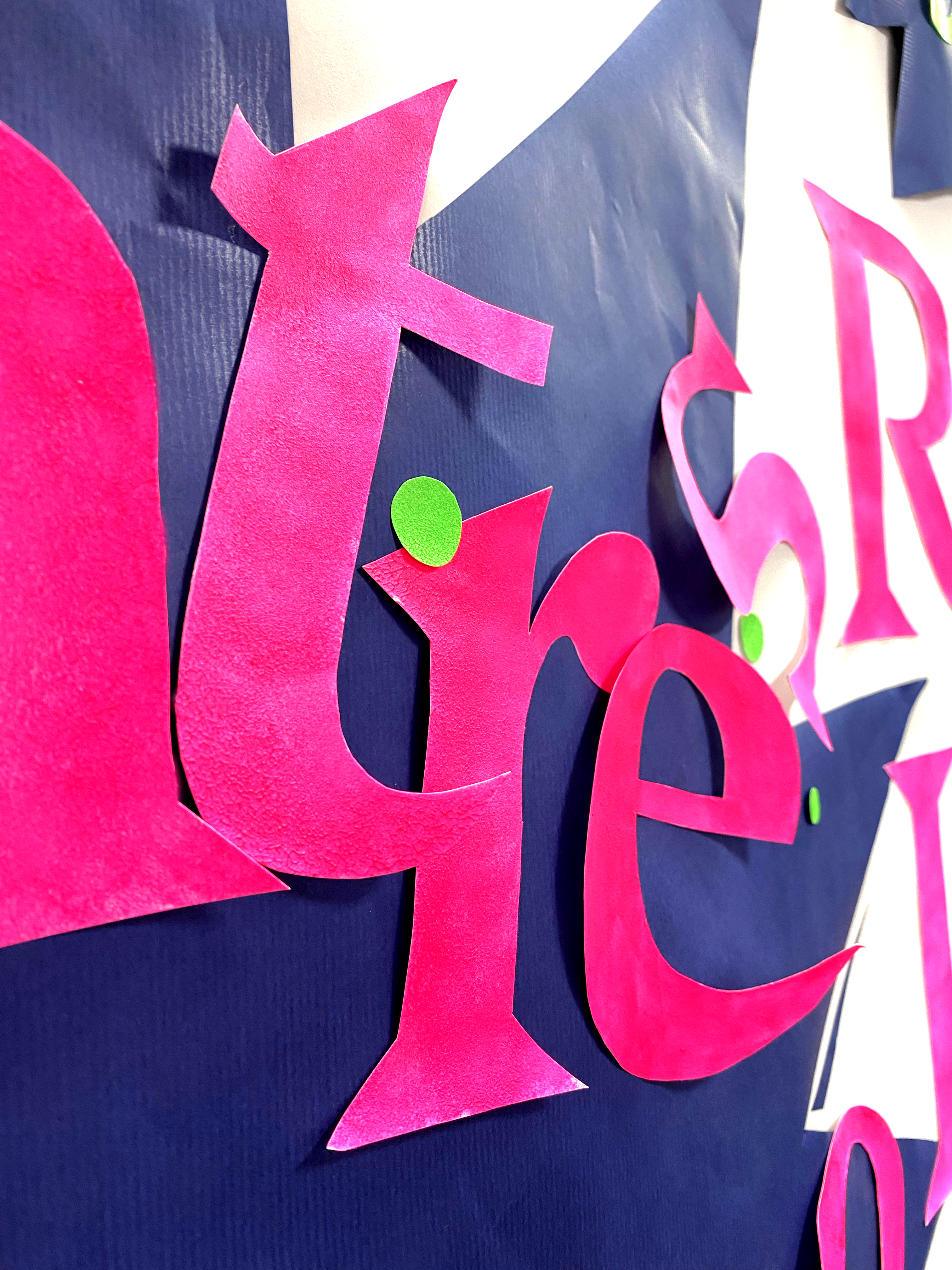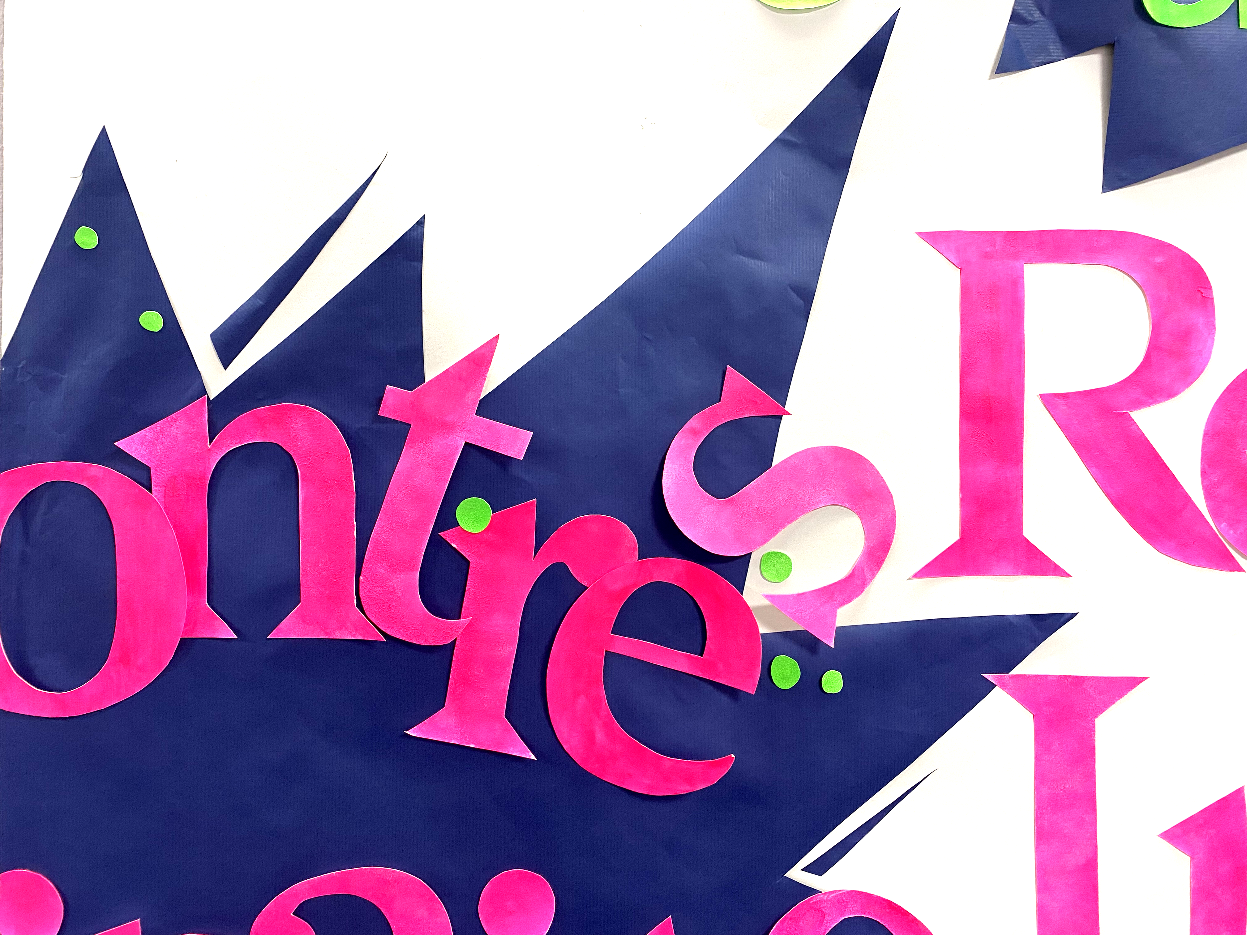 Création d’une affiche (faite à la main) pour un design impactant où le but était de faire de la typographie une fête, en générant une forte intensité, en jouant avec l’excès jusqu’à en déborder. Le thème annuel des rencontres de Lure était « l’évolution, la révolution ». Alors l’idée de « rencontres internationales » coupées en deux a pour sémantique de représenter une tension entre passé et futur.