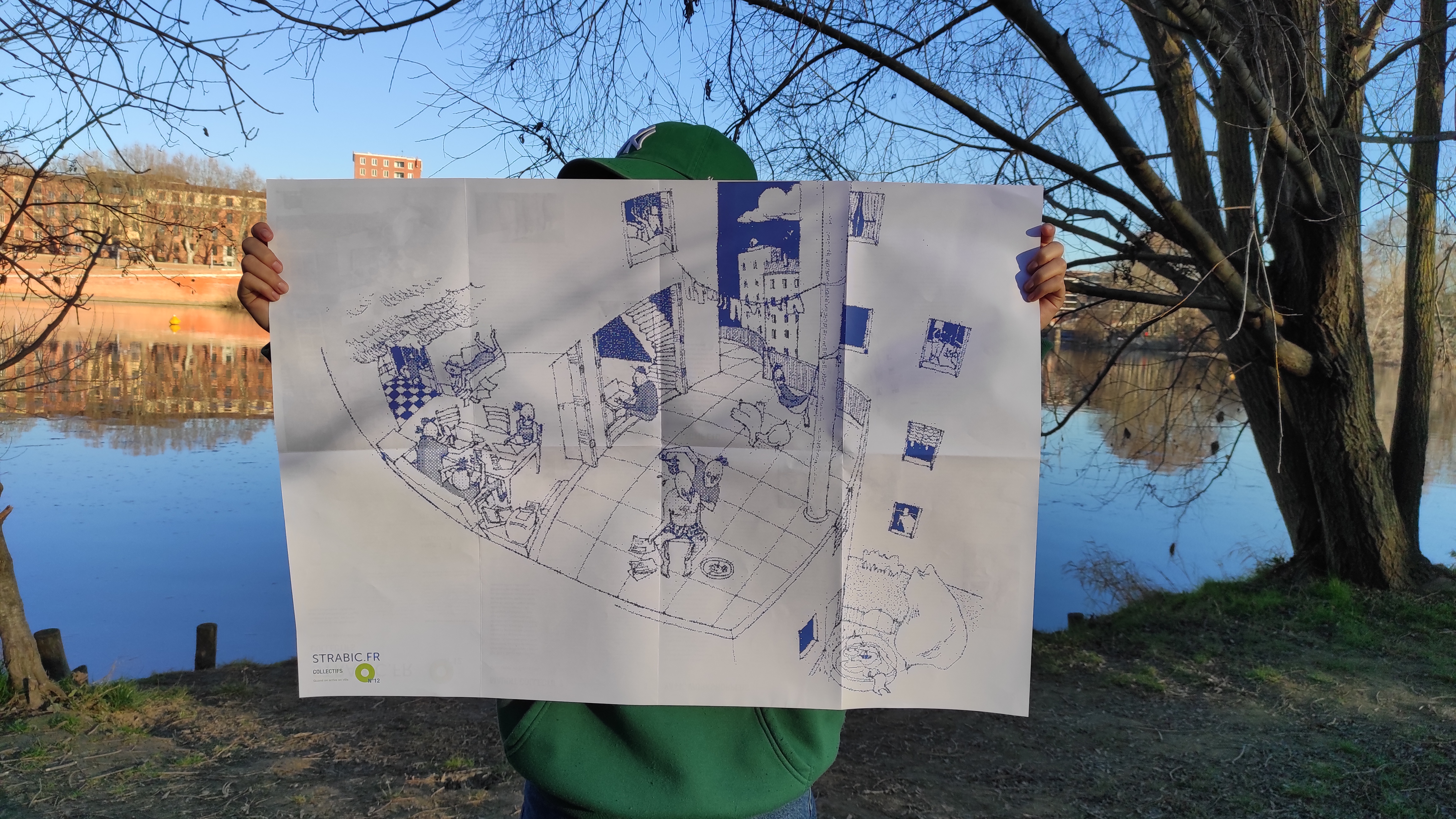 Je me suis limitée à 2 couleurs par questions d'économies. J'ai tramé les images pour les rendre plus vivantes et en mouvements.