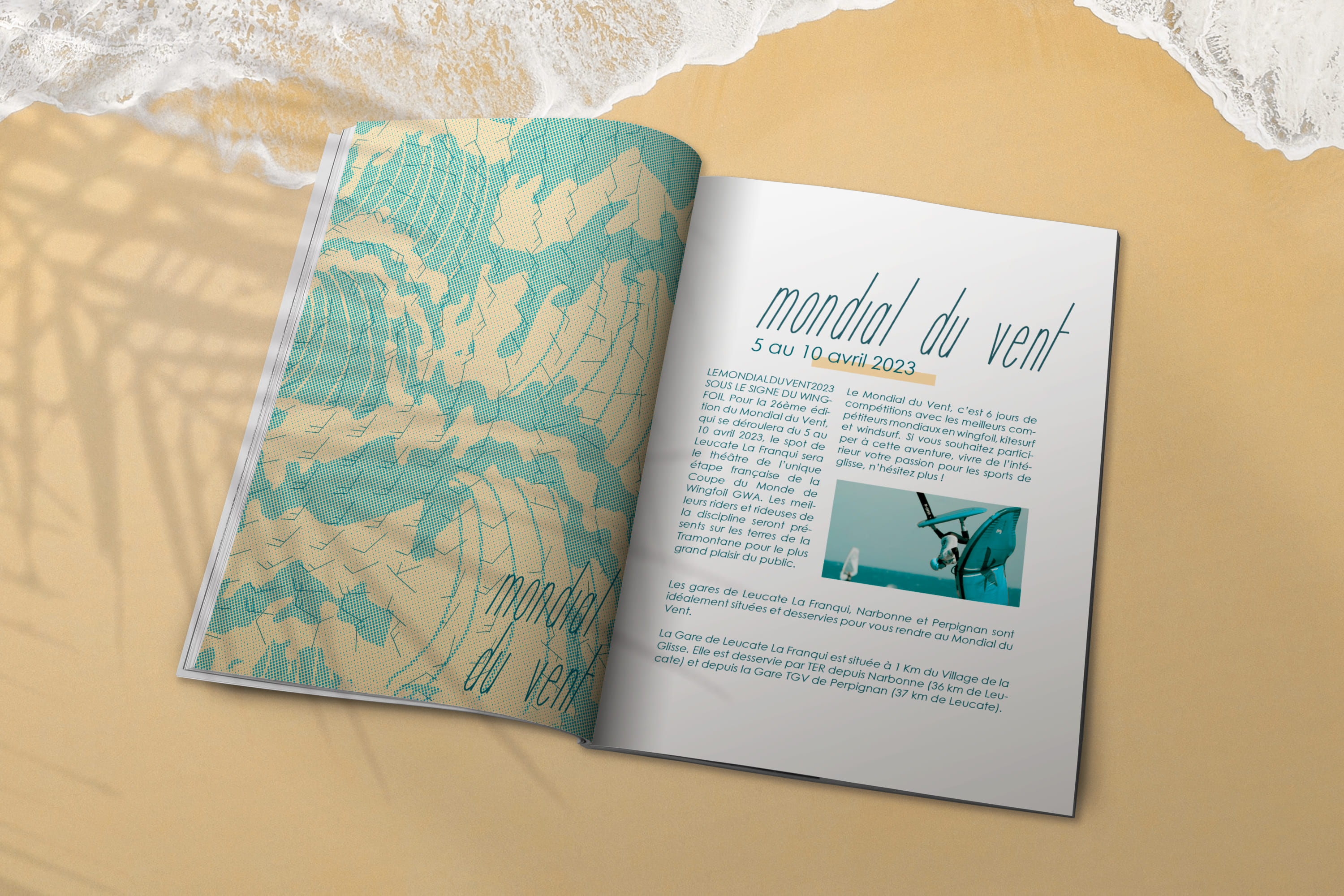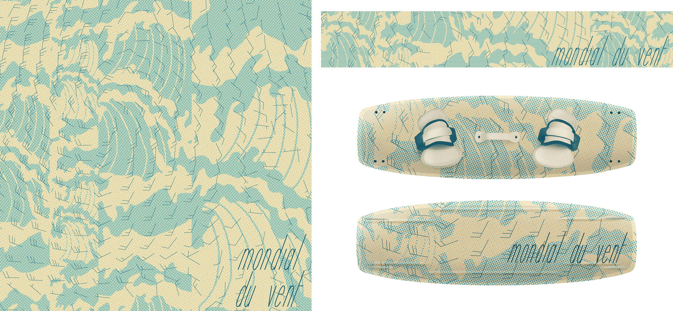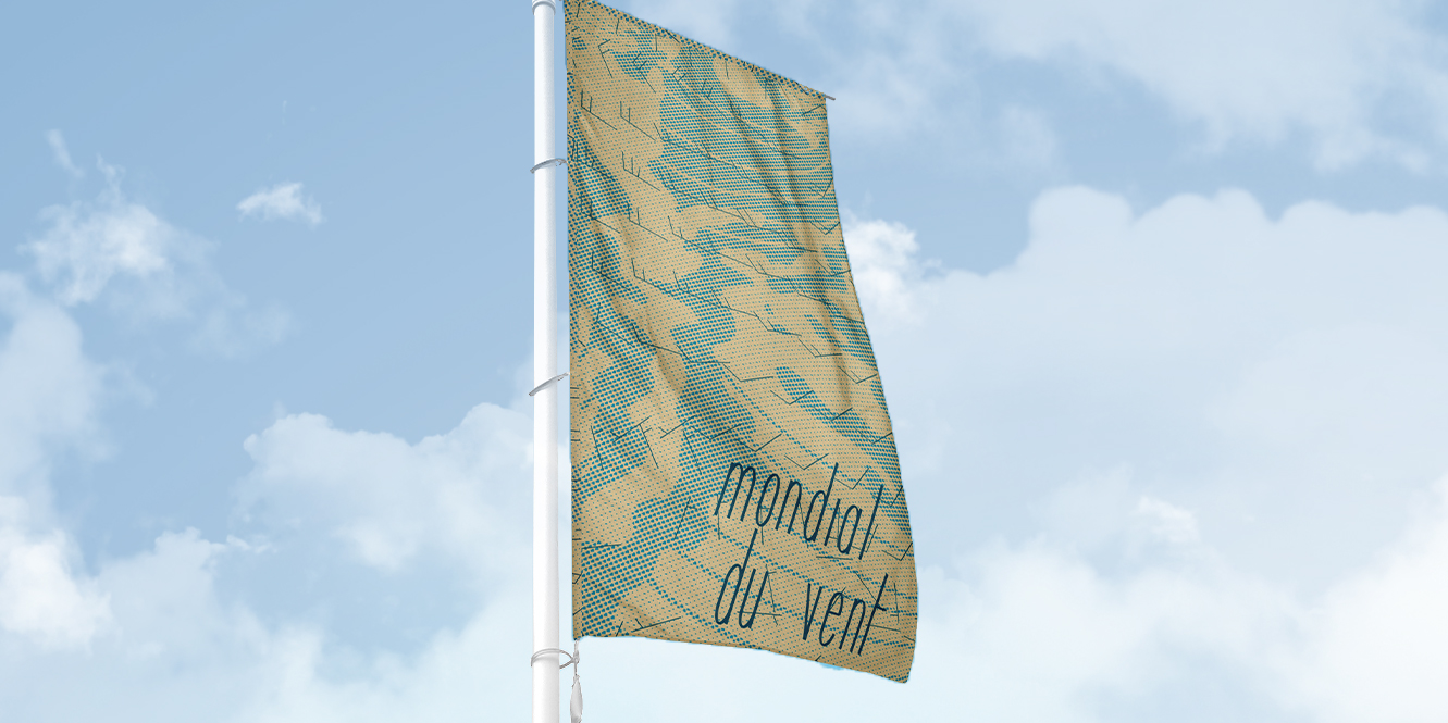 Creation of a fictitious identity for a windsurfing competition. The aim was to create a visual that could be used on several media. We mainly used textiles, an ideal medium for reacting to the force of the wind and representing the event.