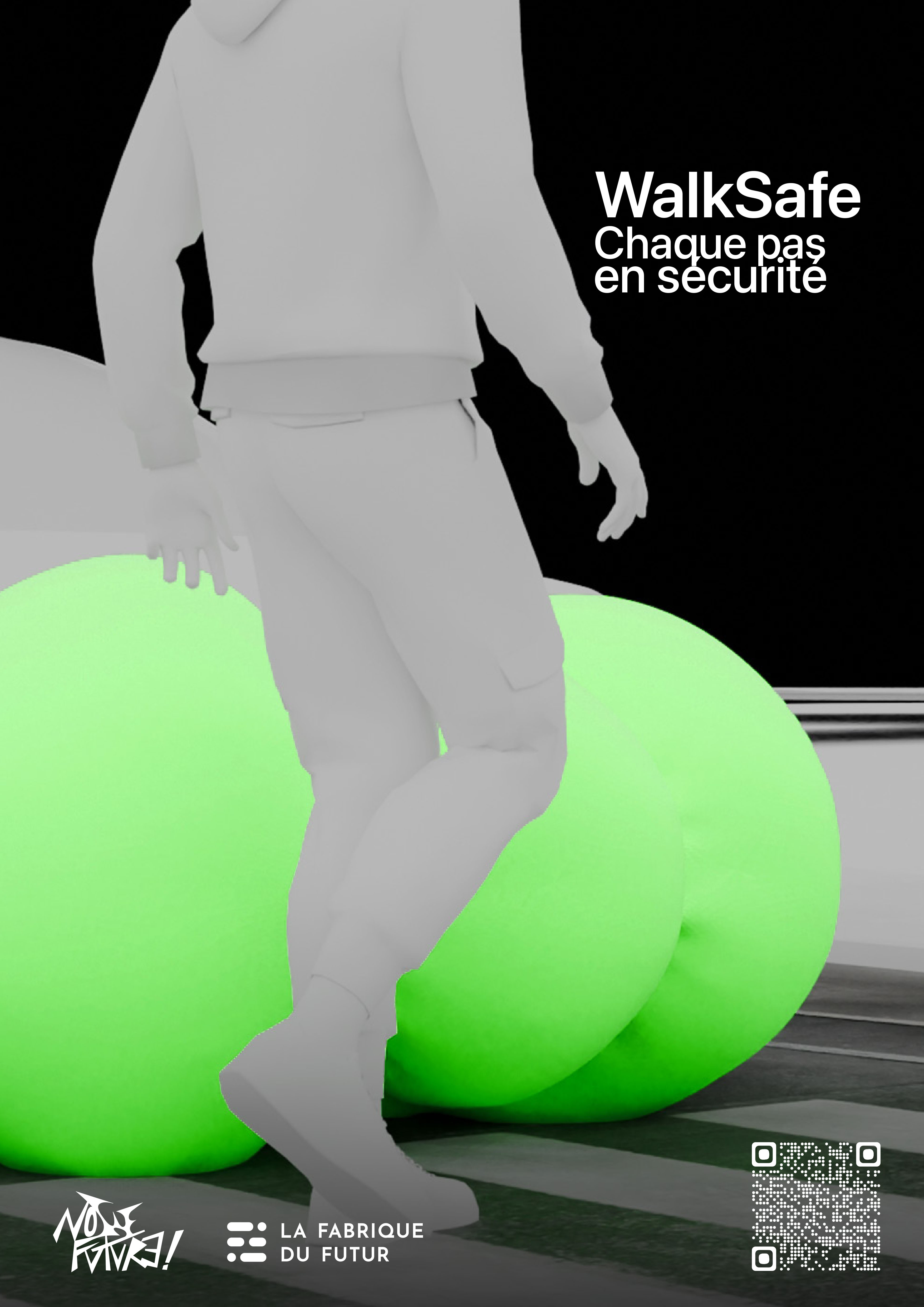 The project is divided into 7 different posters, each dealing with a future technological issue. Based on advertising, each poster presents a fictitious product that could emerge in the near future, the aim being to provoke thought from the public who, if they wish, can scan the QR code to link to an awareness-raising website.