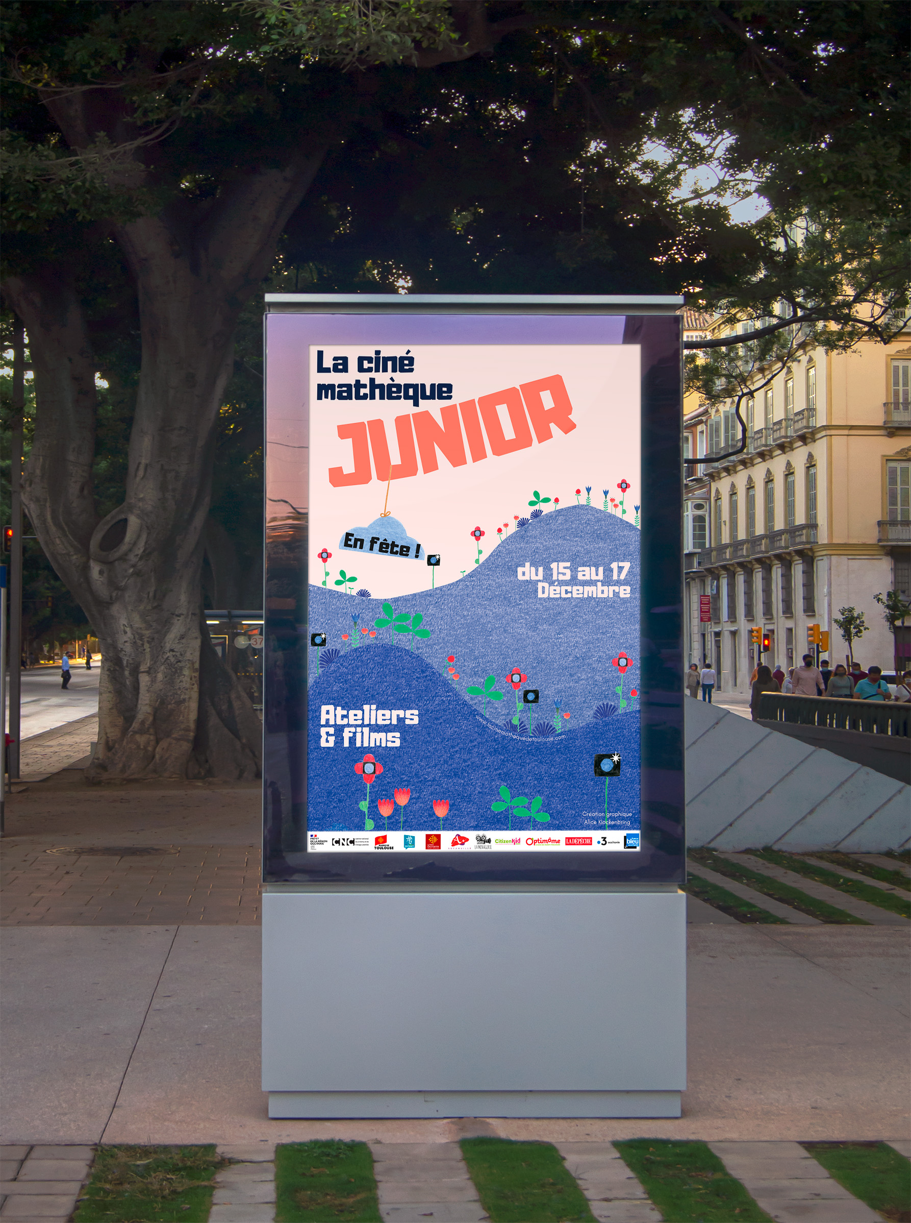 Le principal défi est de séduire les enfants et les adultes via différents médias. Afin d'attirer petits et grands, j'ai décidé de m'inspirée de l'univers de l’un des films projetés “La petite taupe”, qui témoigne du début du cinéma d’animation, de manière à rappeler aux adultes leur enfance tout en plaisant aux enfants.