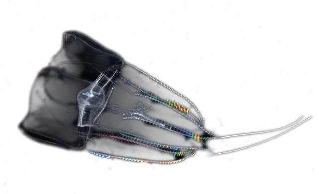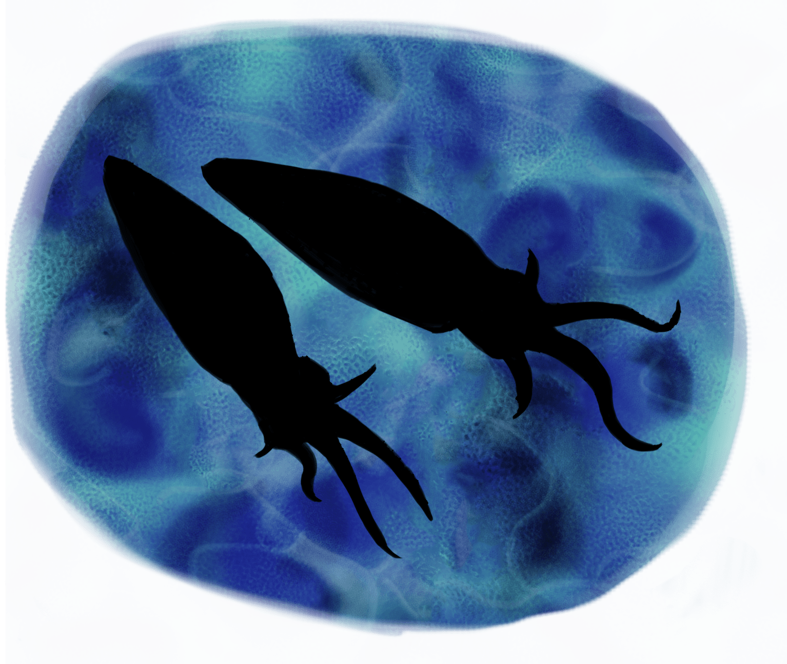 Les animaux qui nagent dans des zones peu profondes, se découpent à contre-jour pour les prédateurs des étages inférieurs. La silhouette de ce calmar ne fait pas exception et le vaste océan ne lui permet nulle cachette. Pour disparaître de la vue de ceux qui seraient tentés de le dévorer, il a choisi de s'illuminer. Son corps, recouvert de points lumineux prend la couleur de l'eau traversée par les rayons solaires. Il disparaît ainsi de ceux qui chercherait à en faire leur repas.