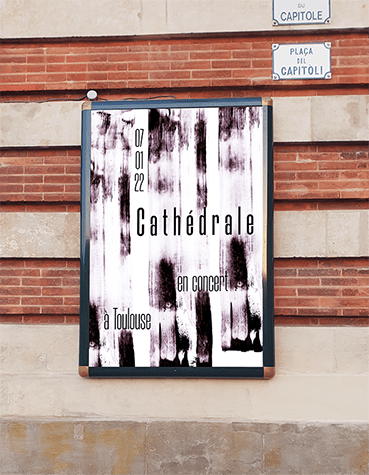 Recherches d'un univers graphique pour le groupe de rock Cathédrale. Leur esthétique oscille entre un environnement urbain et un mouvement rythmé et brut. C'est une musique qui nous permet de nous évader de la routine.