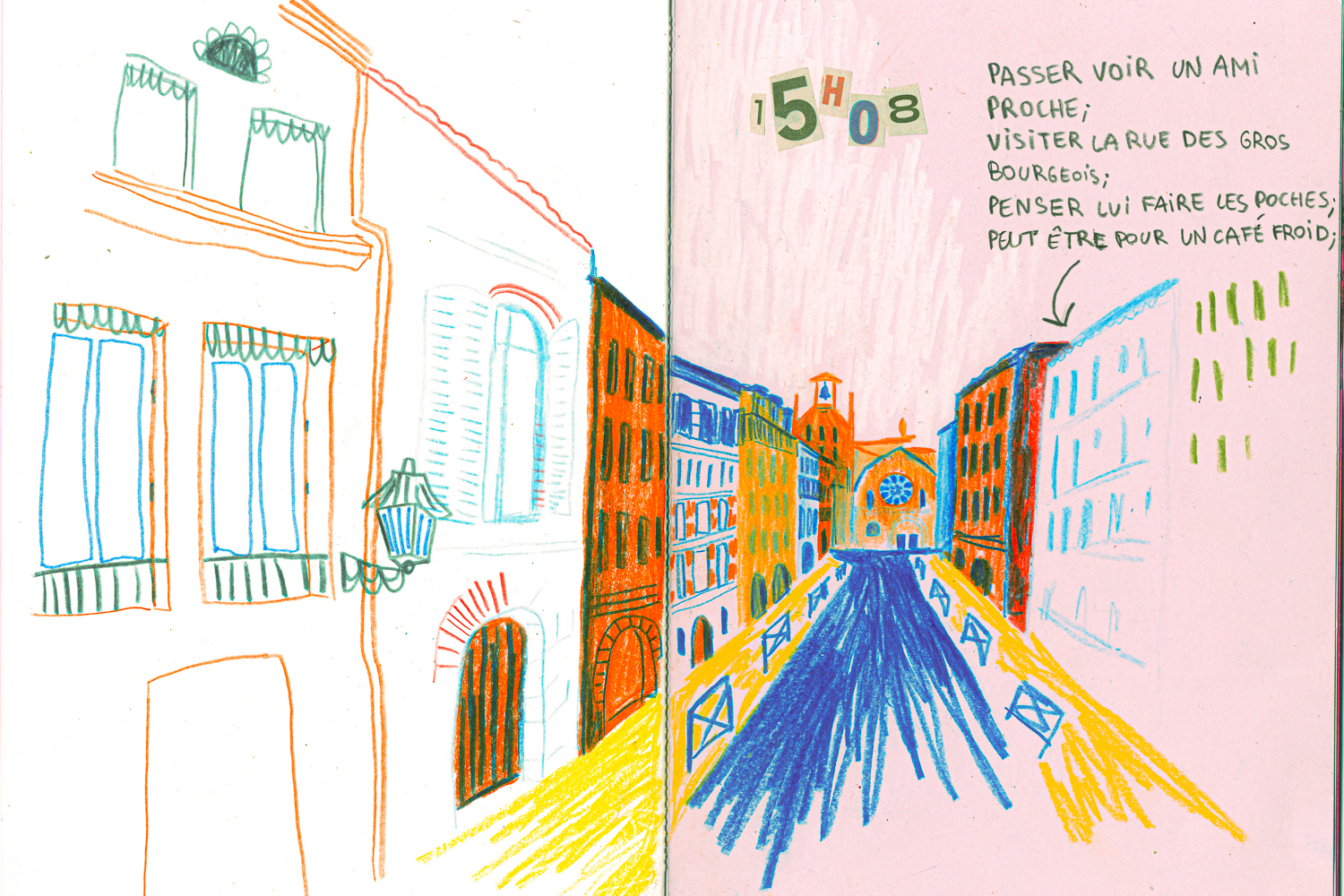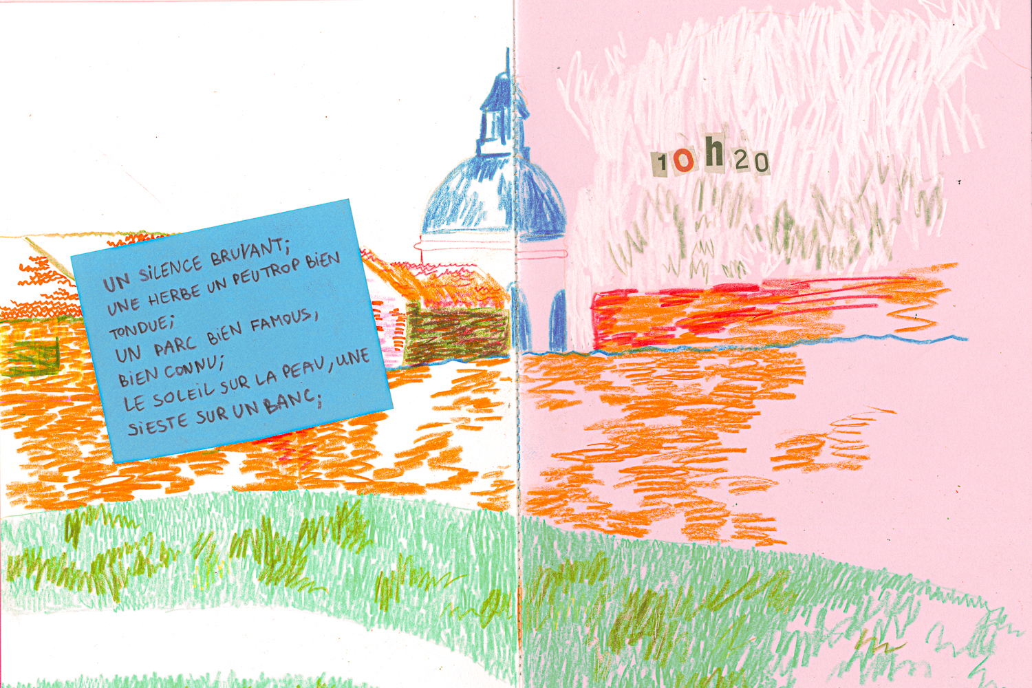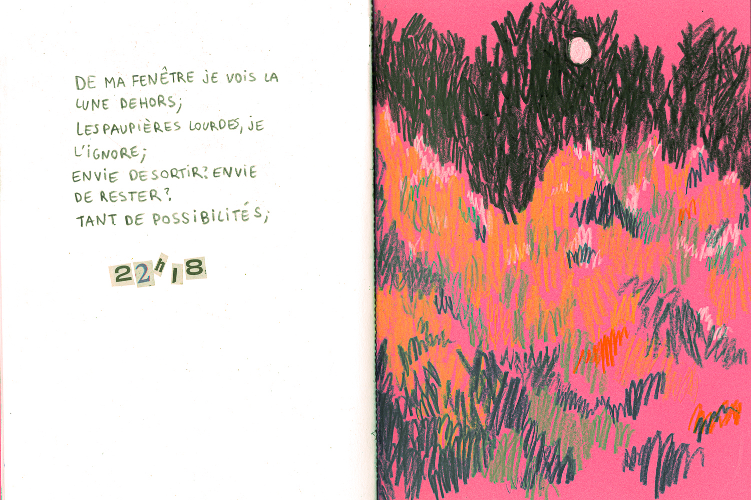 Conceptions de poèmes qui accompagnent des illustrations spontanées dans une relation texte image aux crayons de couleurs. Edition réalisée et reliée à la main sur des papiers variés.