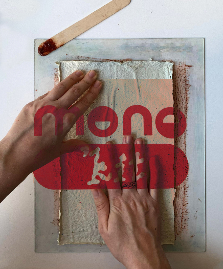 Mono’kit est un kit de monotype créé entièrement artisanalement en passant, du papier, par les encres, jusqu’au packaging. A l’heure actuelle il n’existe pas de kit de monotype et encore moins un qui soit éco-responsable. De ce constat mono’kit a vu le jour. Le papier a été fait à partir de chutes de papier, les encres à partir de pigments naturels donnant de jolies ocres. Pour l’identité visuelle, j’ai créé des pictogrammes ainsi qu’un logo à partir du contenu du kit tout en lui donnant un aspect attractif et moderne.