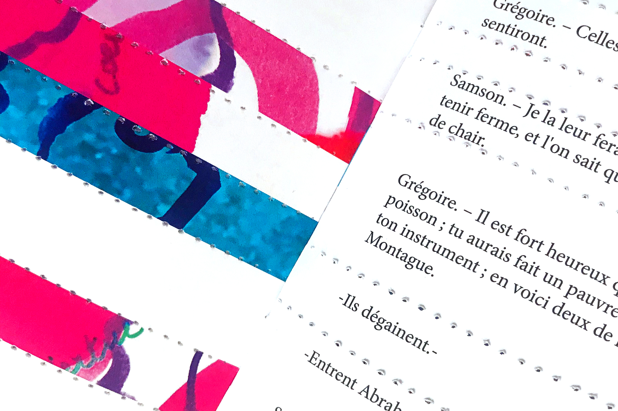 Réalisation d'une édition fictive pour les Éditions Volumiques, ou le livre se transforme en jeu. Après avoir lu la pièce de théâtre vous pouvez découper des parties du livre et jouer en collectif en réinventant l’histoire, mais également en vous prenant pour des comédiens !