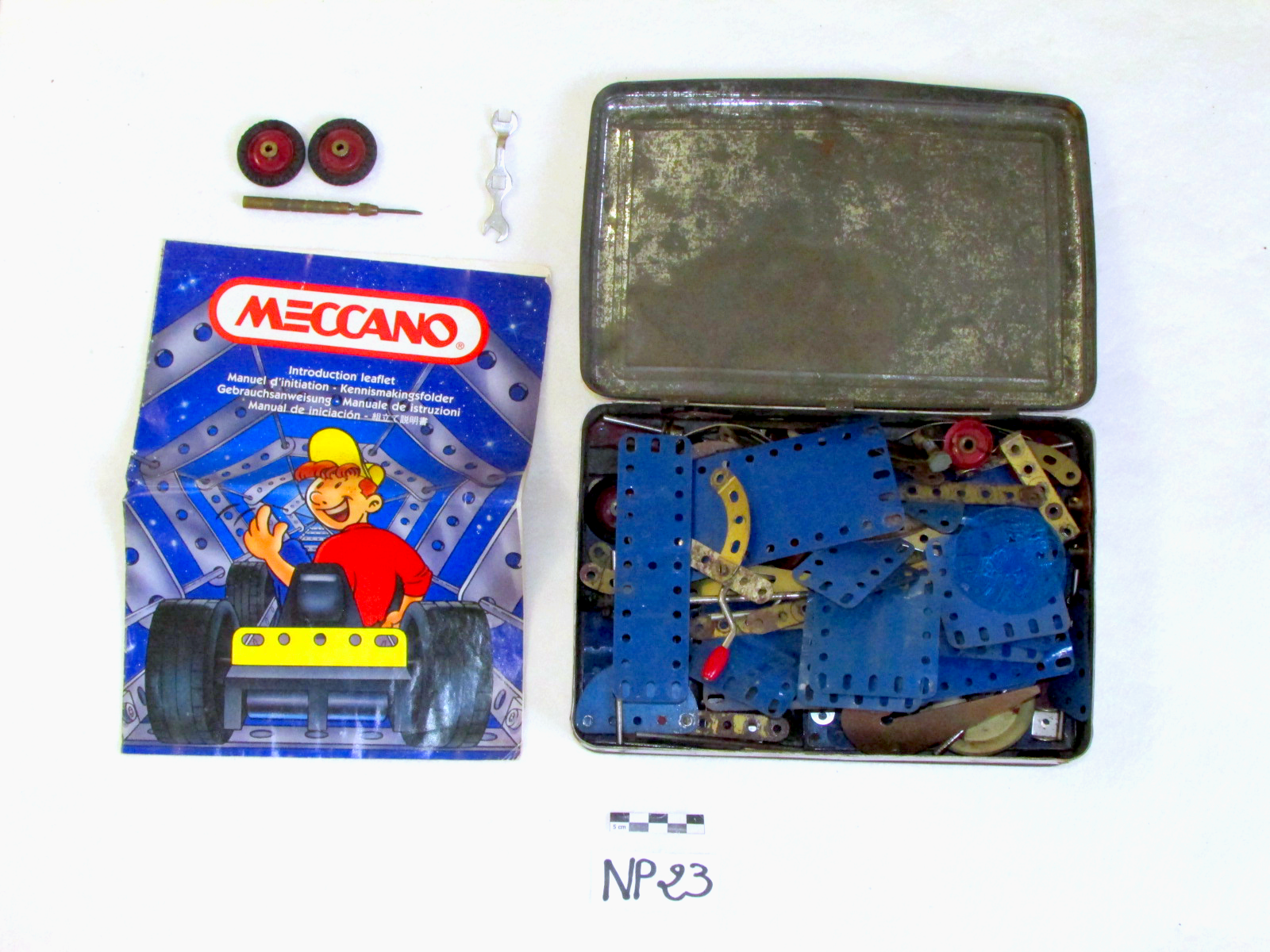 Les différents éléments de l'affiche sont construit a partir d'un répértoire de forme inspiré de la boite de jeu "Meccano", exposée au musée.