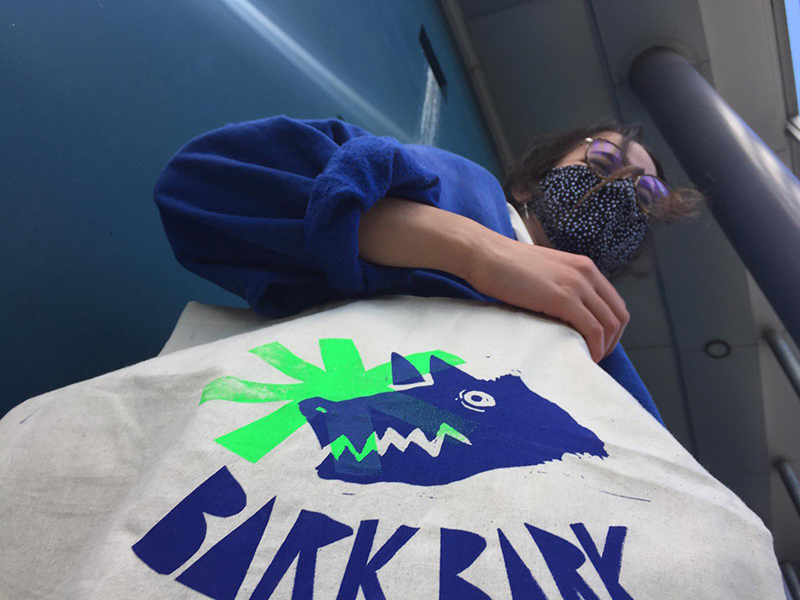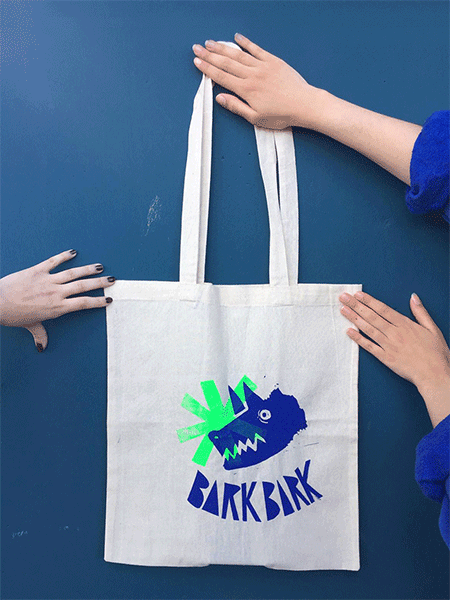 Sérigraphie sur sac en toile. Réalisé avec le kit de sérigraphie Kitono.