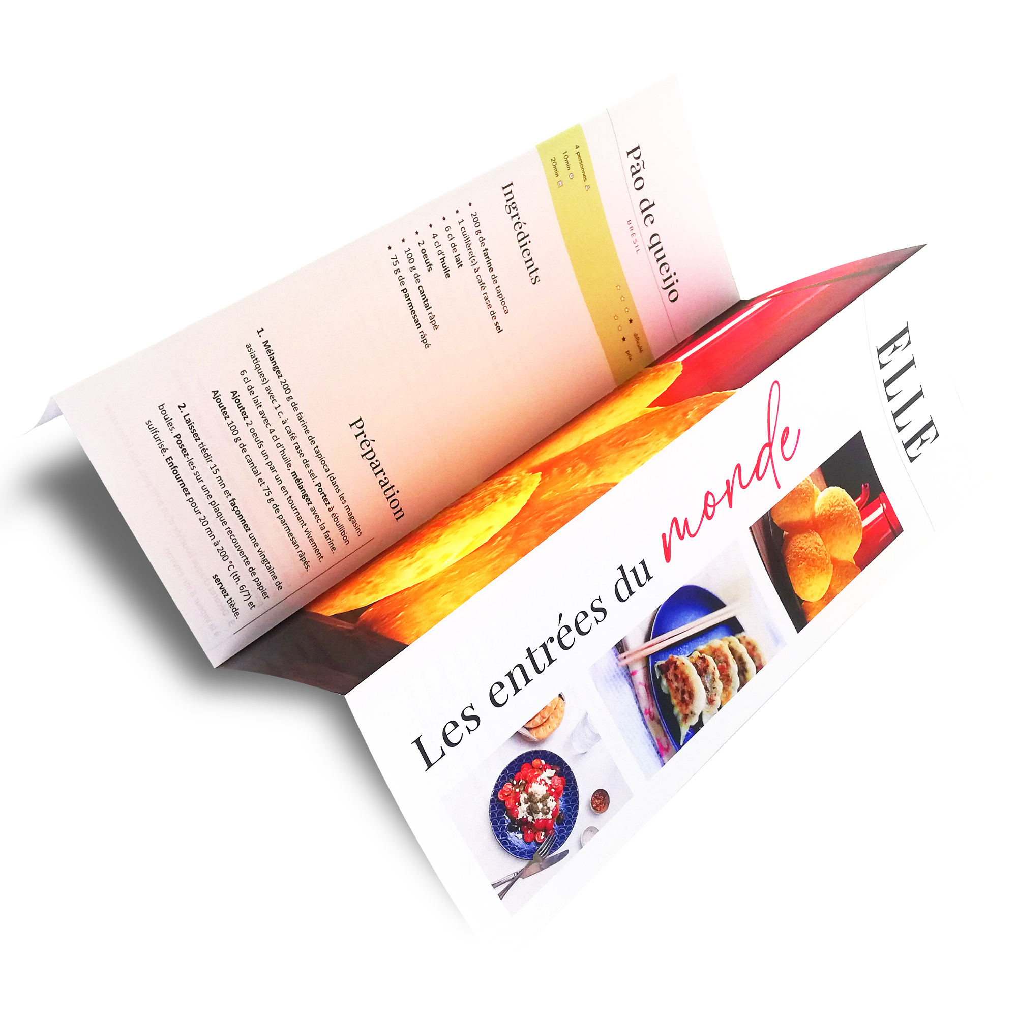 Création de trois dépliants à quatre volets faisant découvrir de nouveaux horizons culinaires avec de nouvelles saveurs et savoir-faire des quatre coins du monde. Le but étant de voyager tout en restant chez soi.