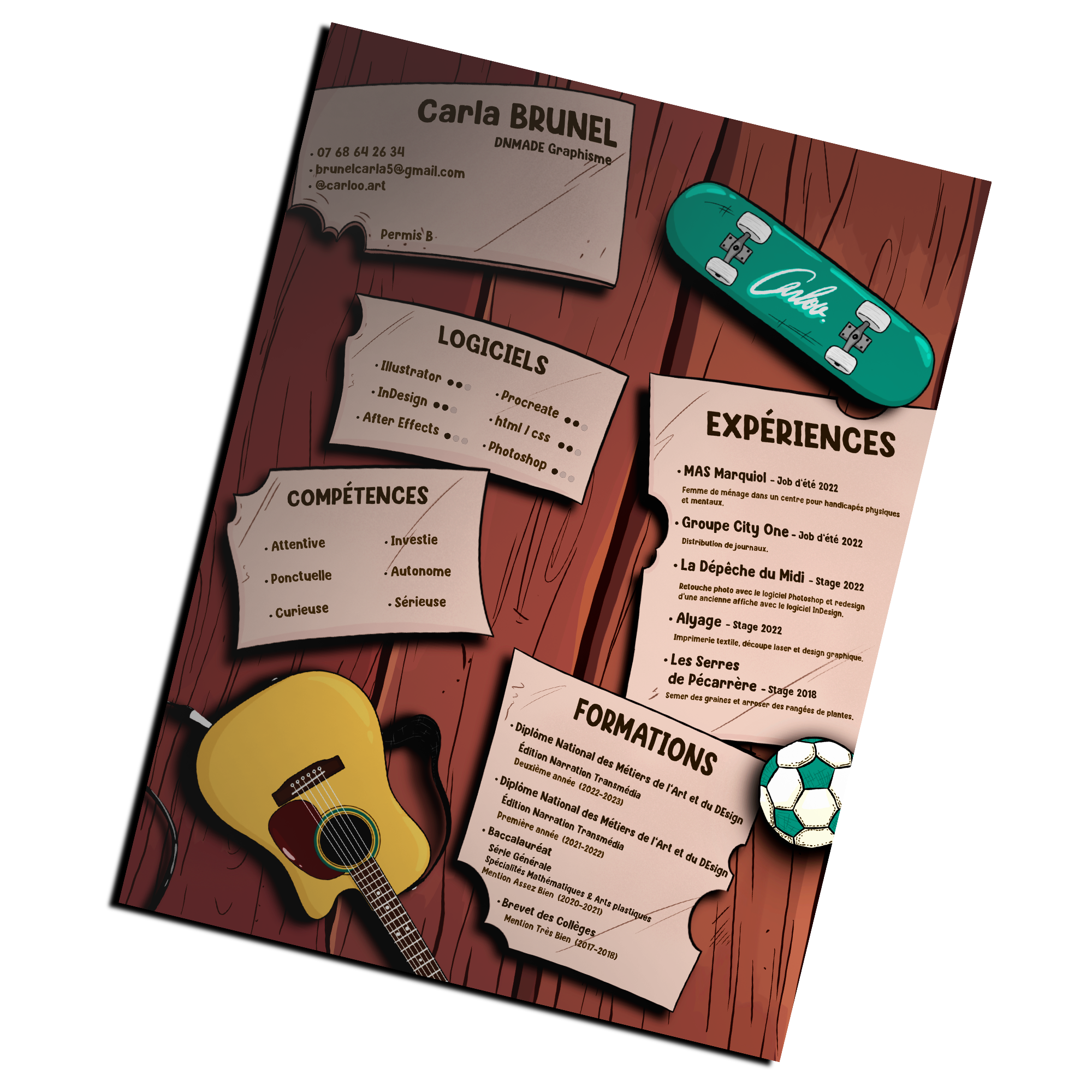 Un CV sous forme de poster, uniquement en illustration cartoon, dans le but de postuler à un stage étant dans ce milieu.
