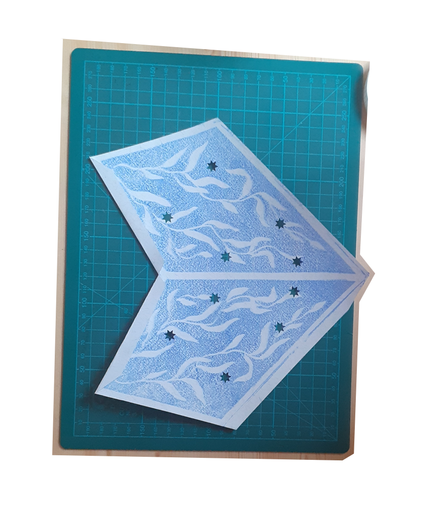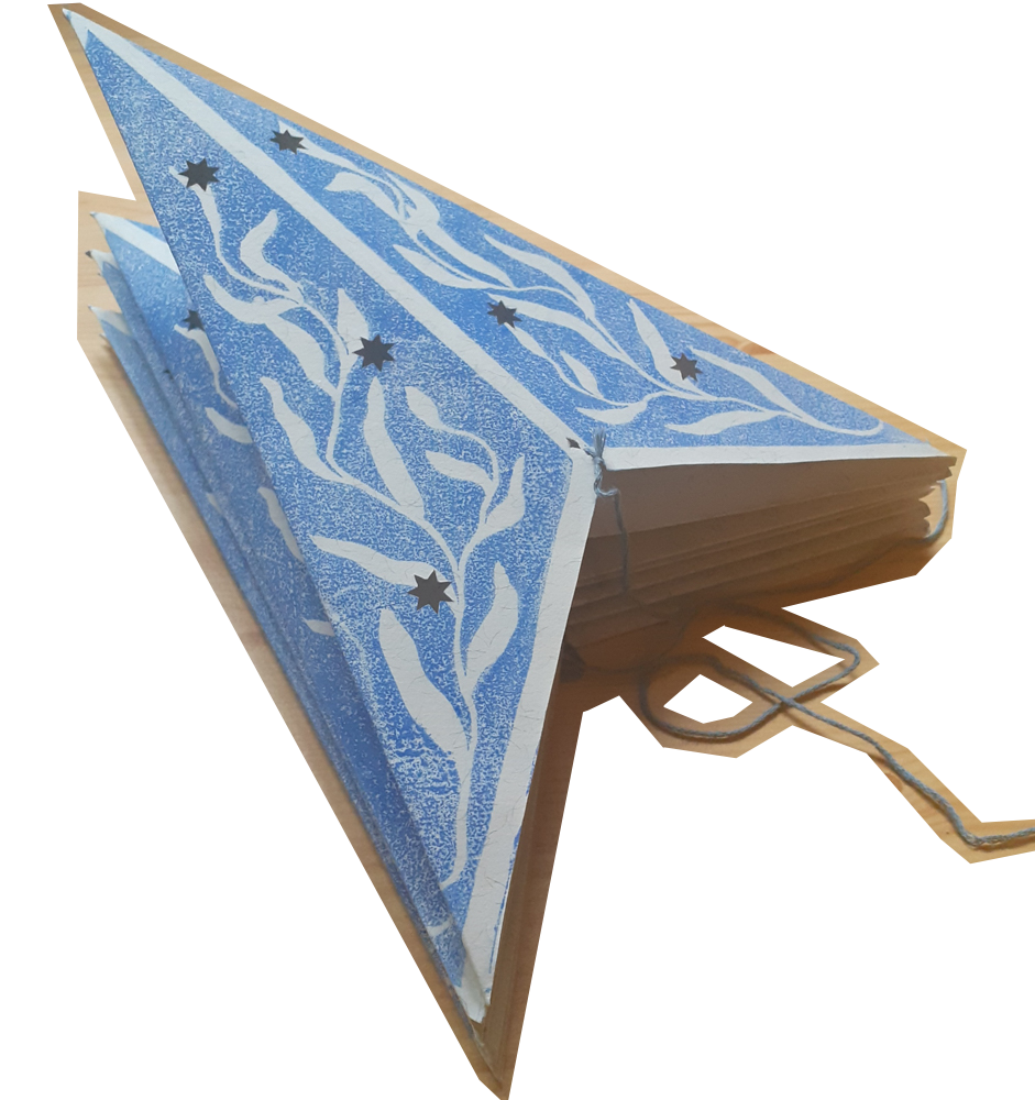 Etoile de Noël en papier, décor imprimé à la linogravure.