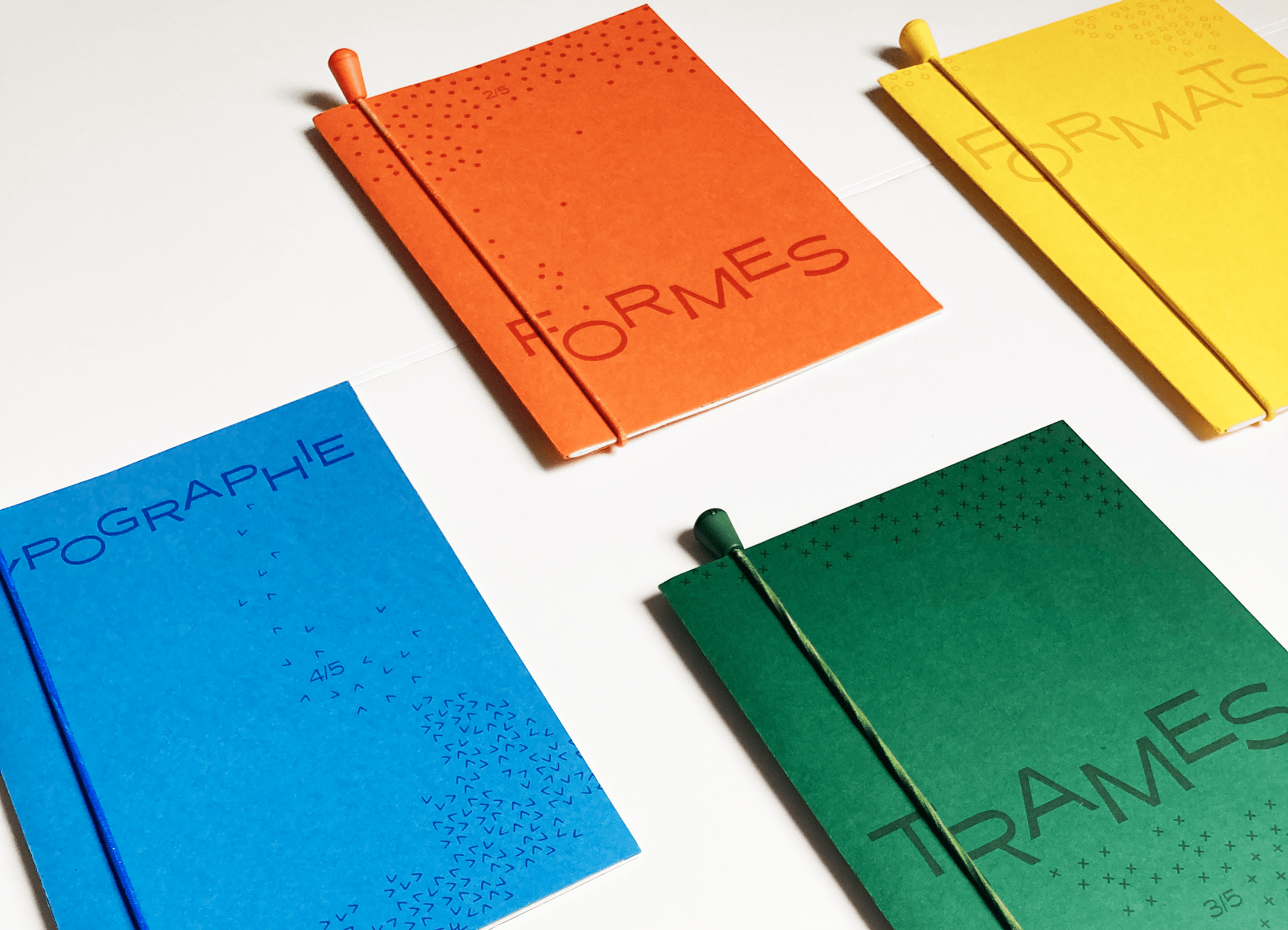 Following on from the research diary, I experimented and developed a series of notebooks based on different graphic design parameters. The aim is to promote manual practice and different ways of experimenting freely, and to offer a more liberated approach to graphic design. Editions are for students who study applied arts from secondary school to higher education.