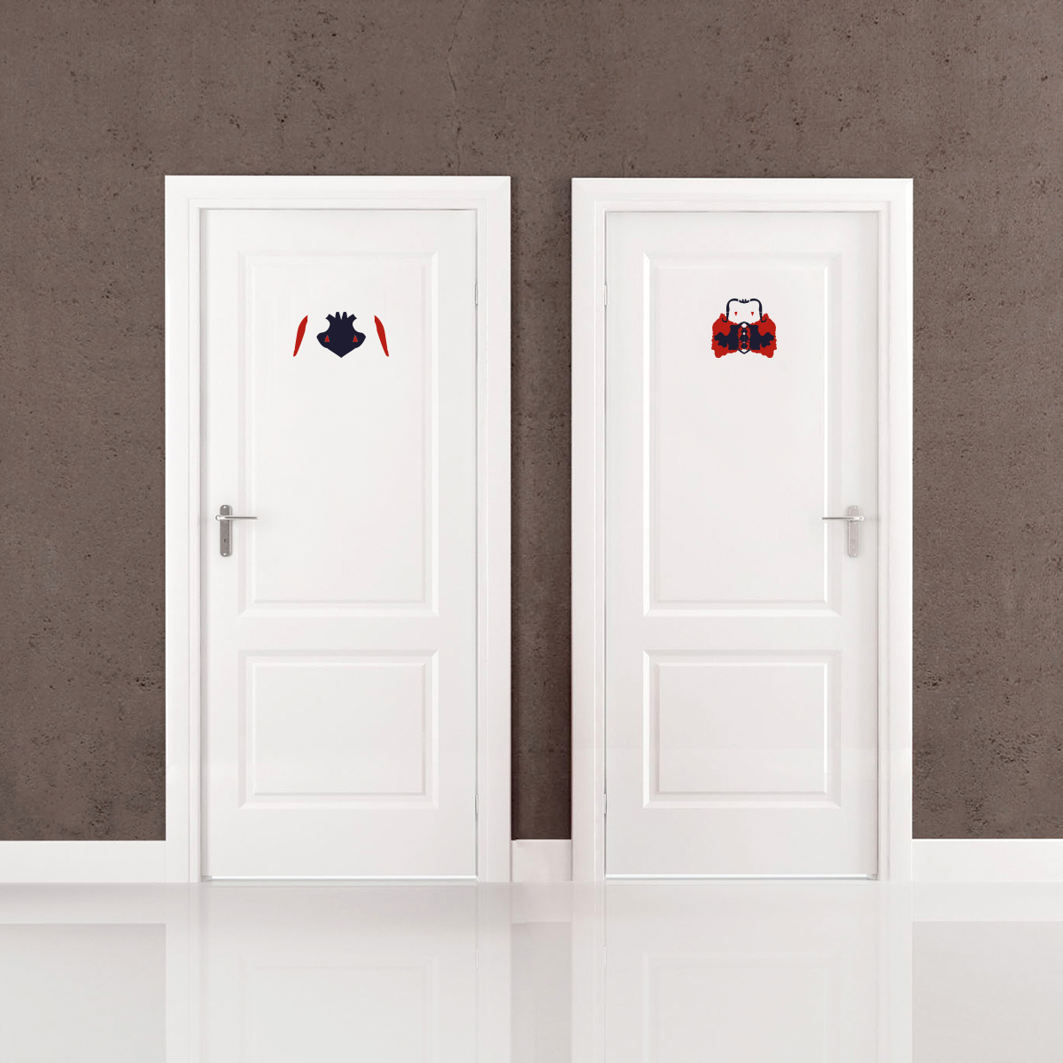 Motifs transformés en pictogrammes. Ici en pictogramme de toilette hommes / femmes.