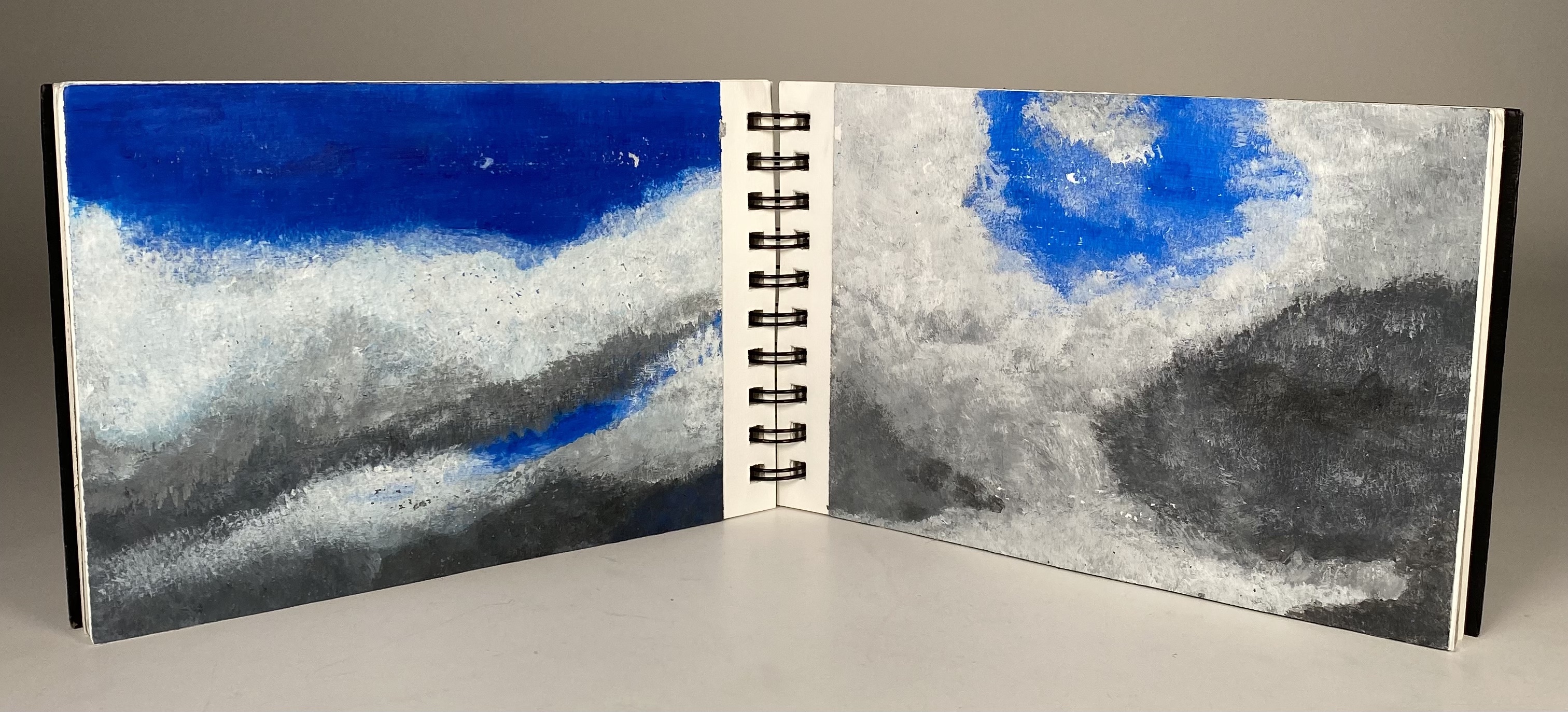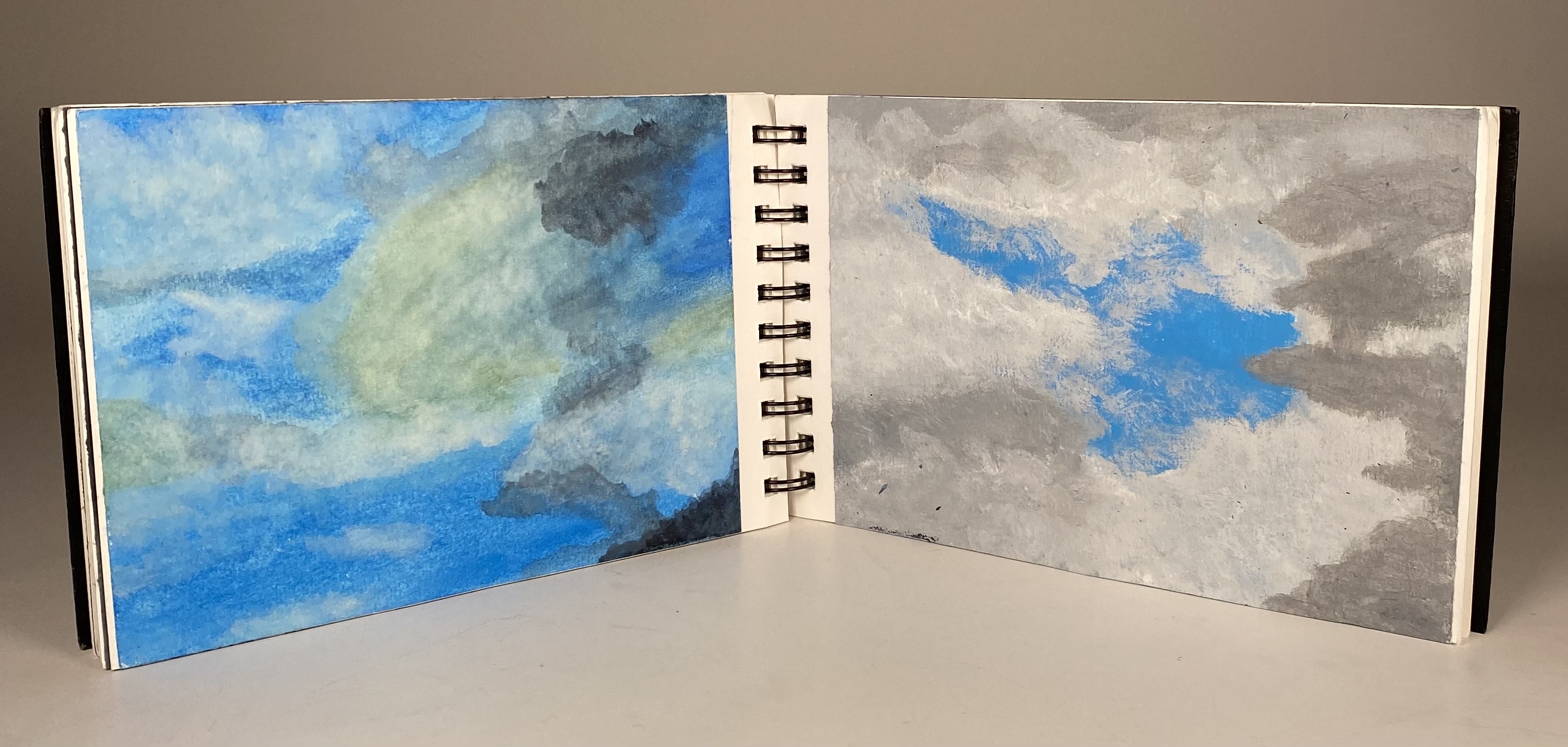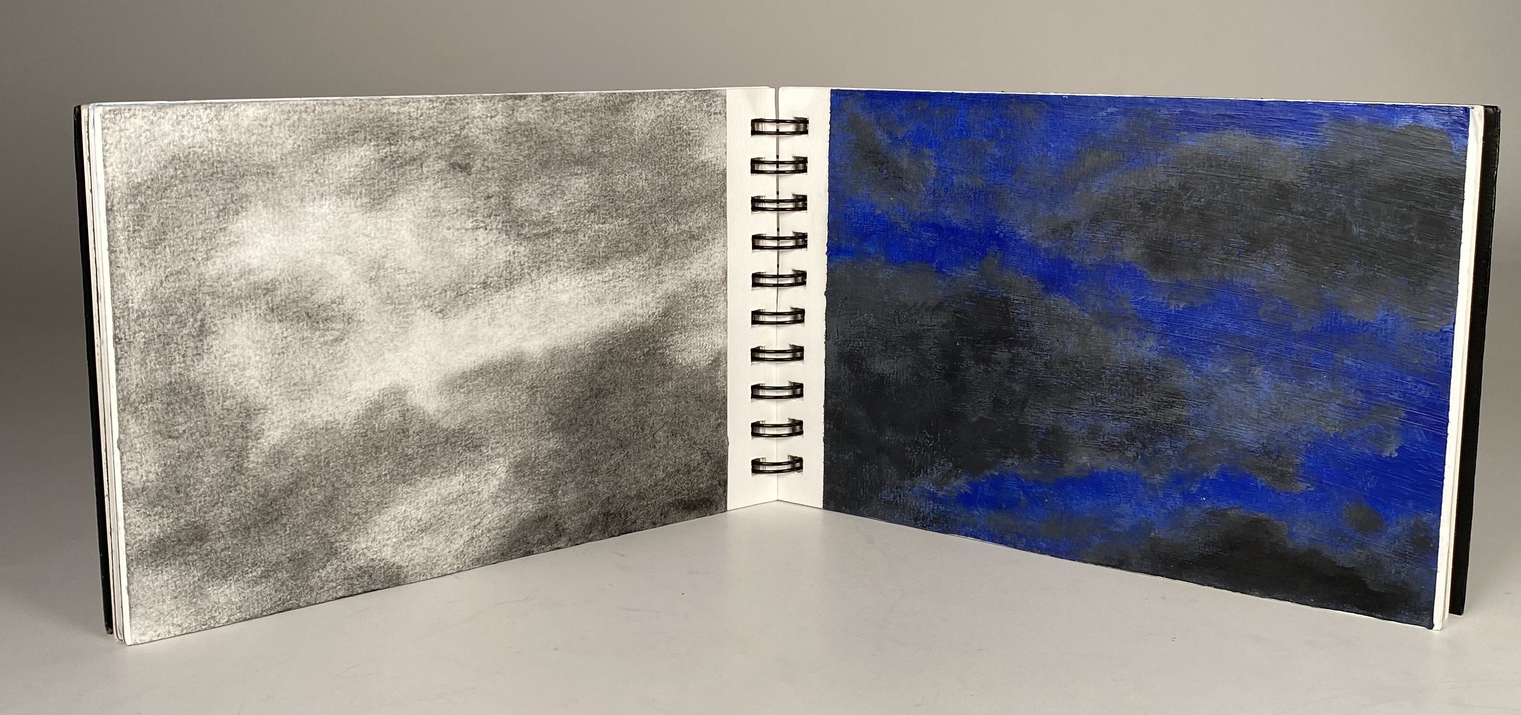 C’est donc pour cela que j’ai voulu capturer ces instants en utilisant différents médiums comme l’aquarelle, le fusain la peinture ou le crayon pour voir les différents effets qu’ils pouvaient produire afin de capturer les variations du ciel.