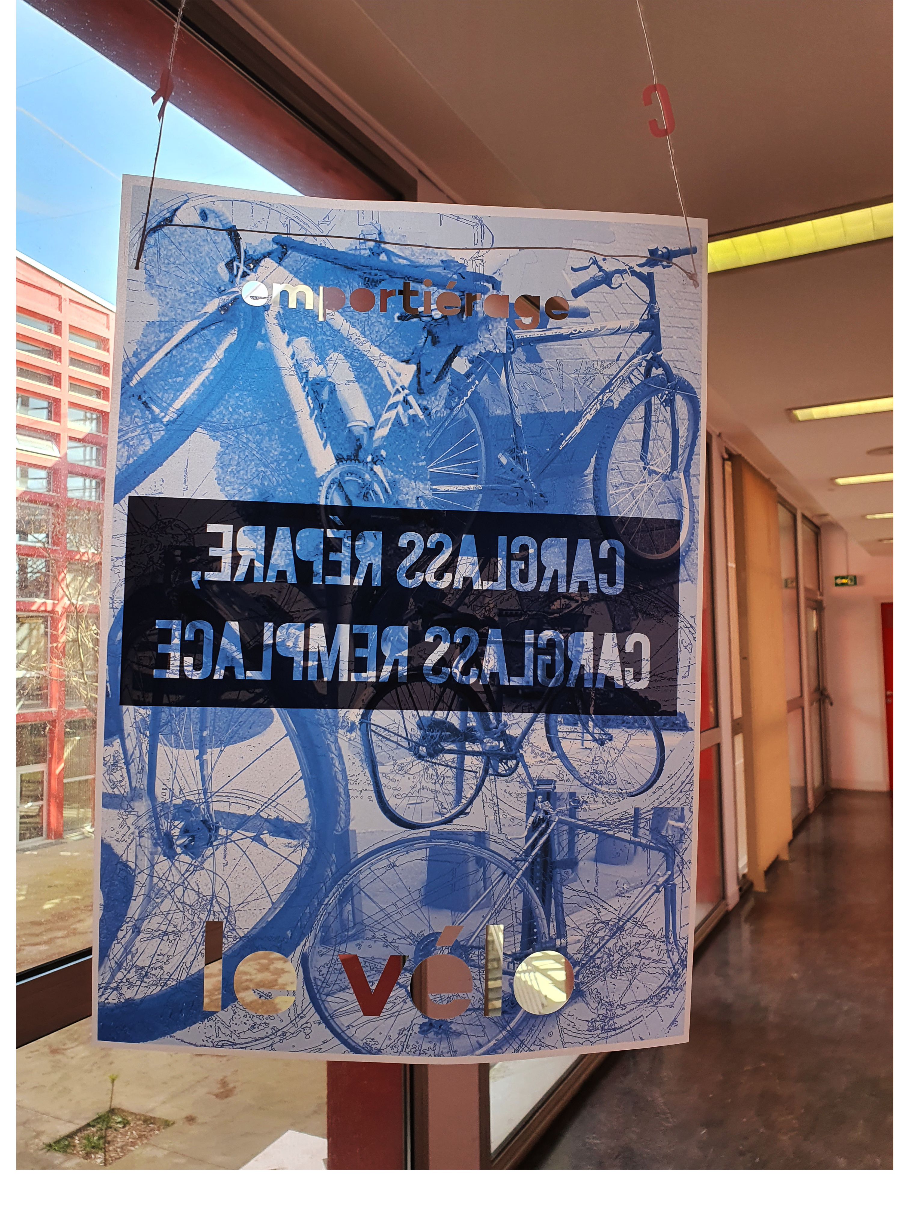 - contraste coloré –> confrontation / choc entre la porte et le vélo