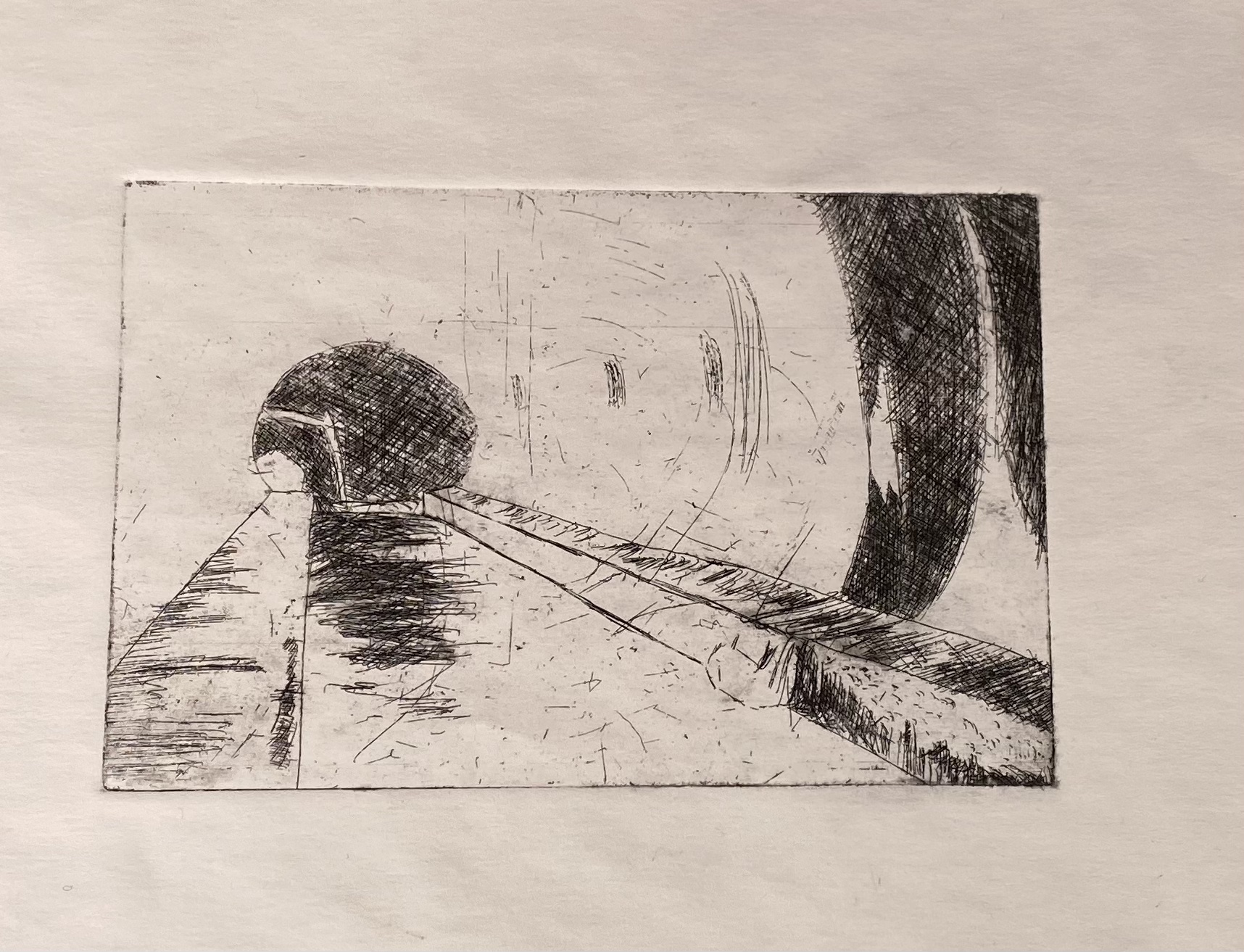 Objectif : explorer les procédés techniques issus de la gravure à l’eau forte, la représentation de la réalité avec le caractère incisif et précis de la pointe sèche, associé à différents temps de morsure.