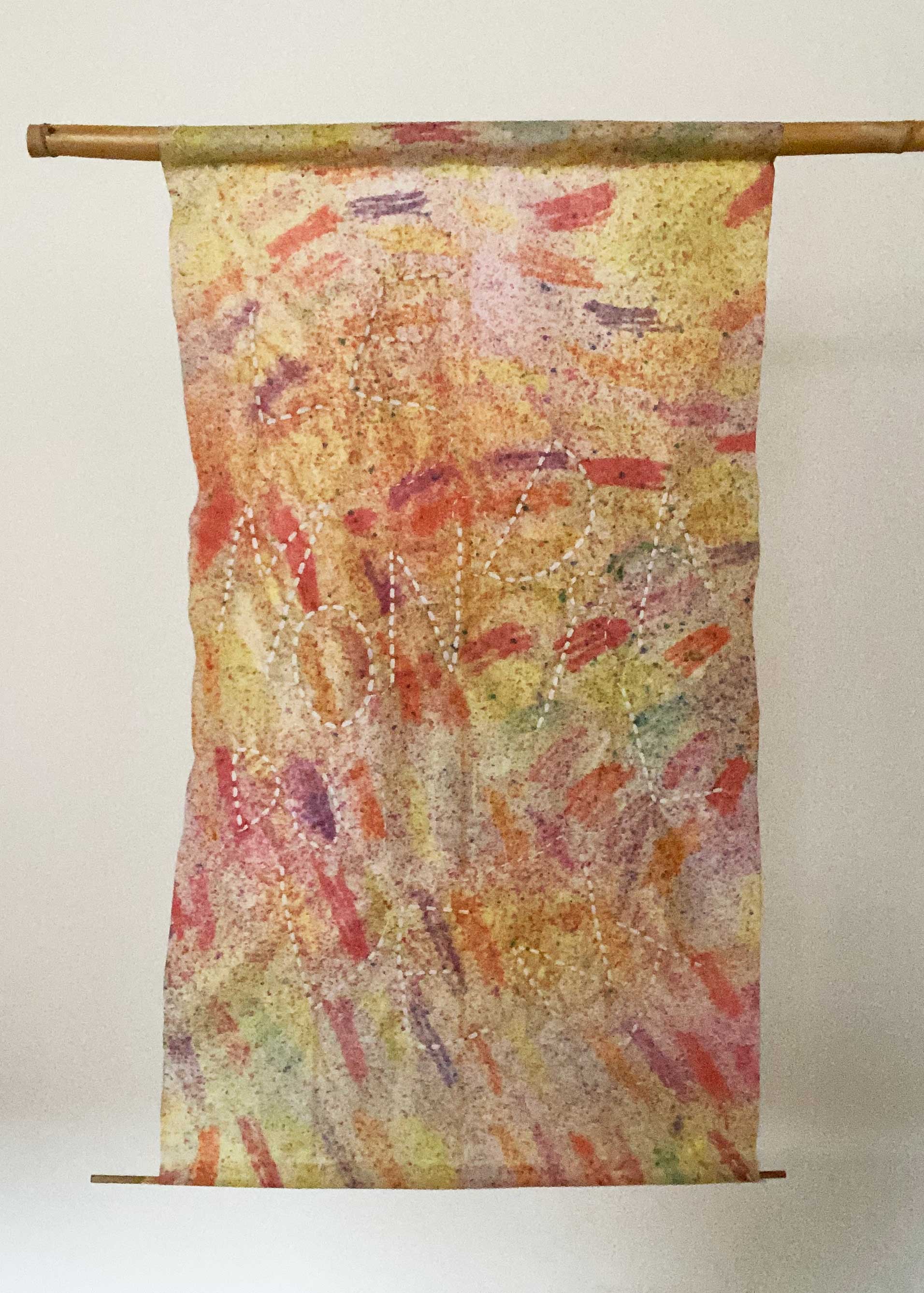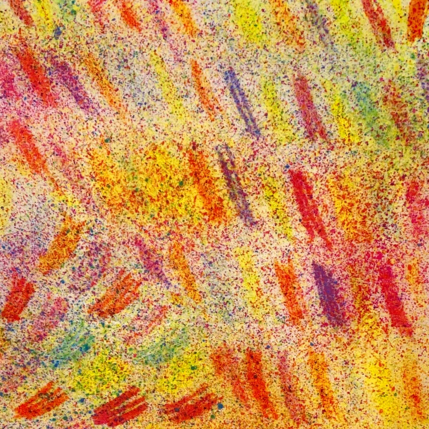Chaque motif représente un type de vent: faible, moyen et fort... Afin d'approfondir mon principe, j'ai alors ajouté un fond réalisé aux crayons de couleur pour accentuer l'idée de mouvement du vent.