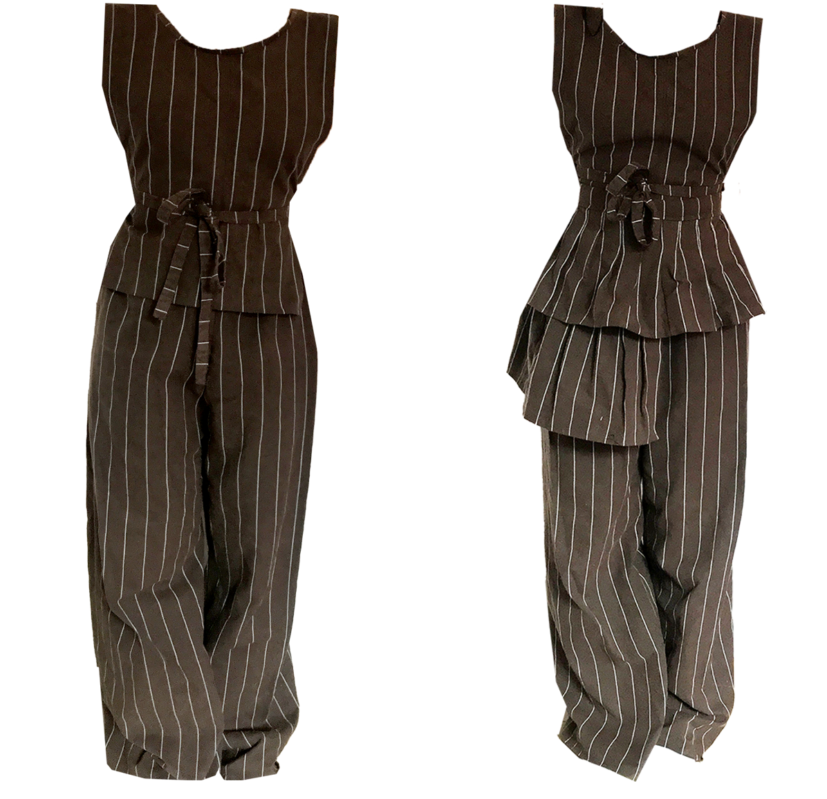 composé d'un pantalon large, d'une jupe asymétrique