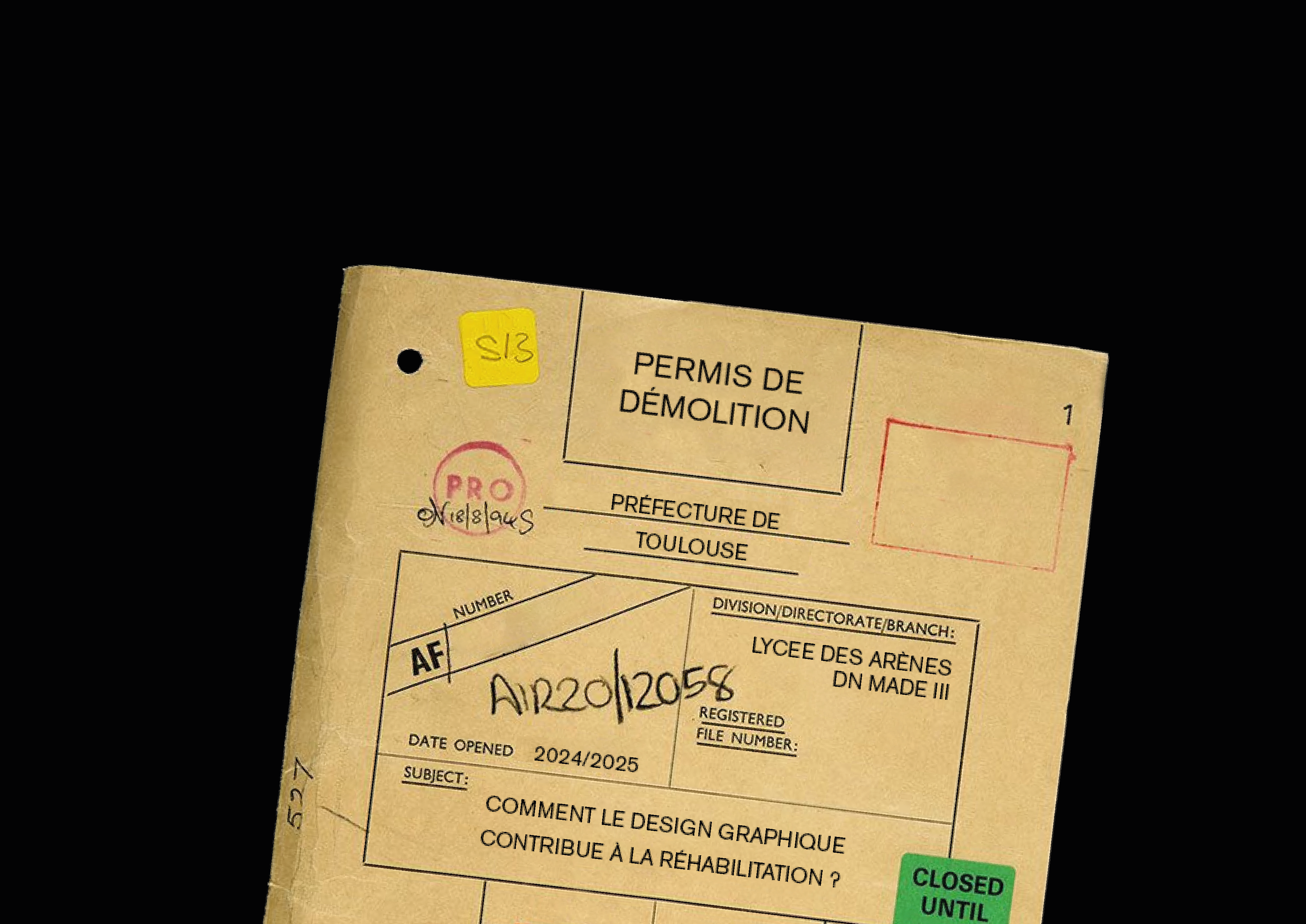 Ce sujet de réhabilitation me motive car il fait intervenir le design graphique de façon spontanée. De plus, il est porteur d’enjeux multiples concernant le réemploi des matériaux, les questions d’écologie qui mettent en évidence des complexes urbains ainsi que l’interrogation autour des mémoires des sites.