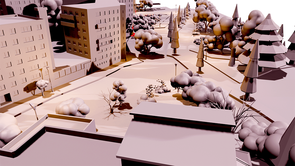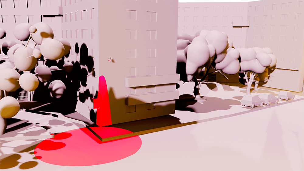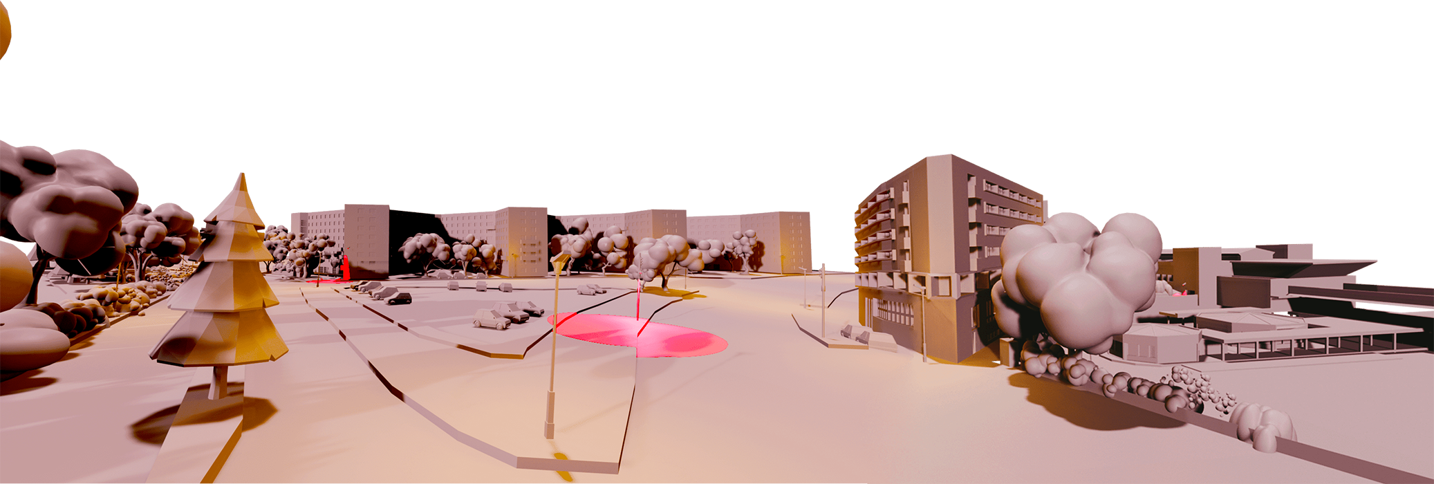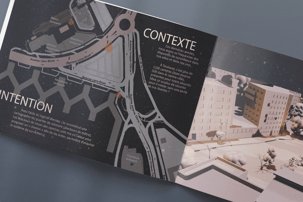 À l’aide du logiciel Blender, j'ai réalisé une cartographie 3D détaillée du quartier de Jolimont où j’habite. La position et la vision des caméras sont représentées par des faisceaux rouges, ce qui permette de trouver un chemin afin d’esquiver le système de surveillance.