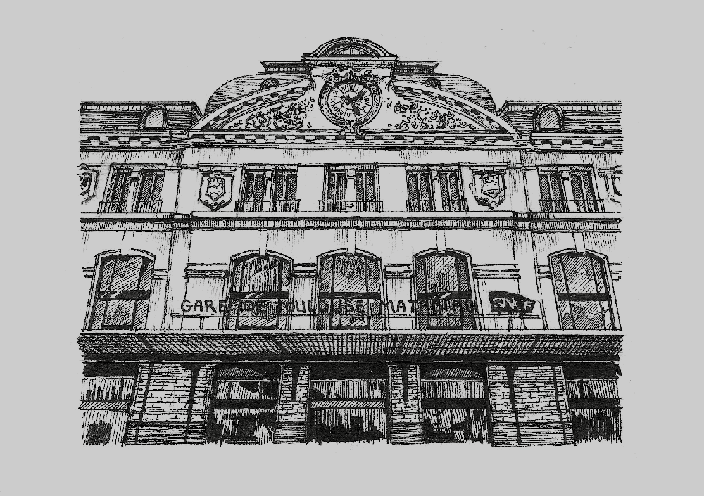 Mes croquis détaillés, format A5 à la plume de la Gare de Toulouse Matabiau dans le cadre du projet Enquête sur un lieu.