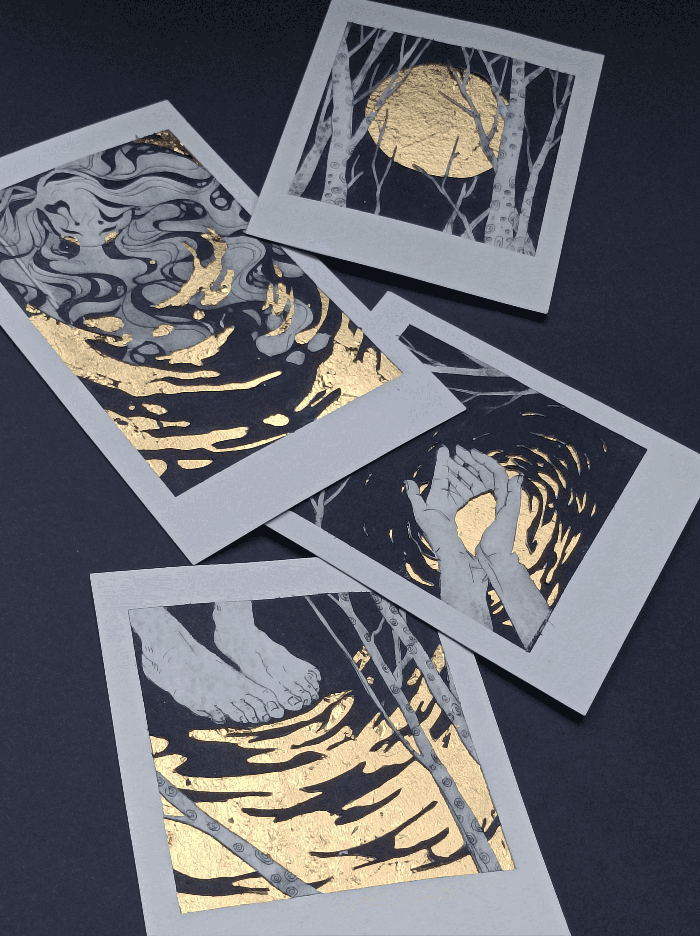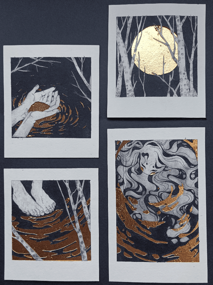 Réalisation une série d'illustration inspirée par "l’Histoire comique des États et Empires de la Lune" - une nouvelle initiatique relatant un voyage imaginaire sur la Lune écrite par Cyrano de Bergerac en utilisant les techniques liées à l’art de l’imprimerie (gaufrage/monotype intaglio).