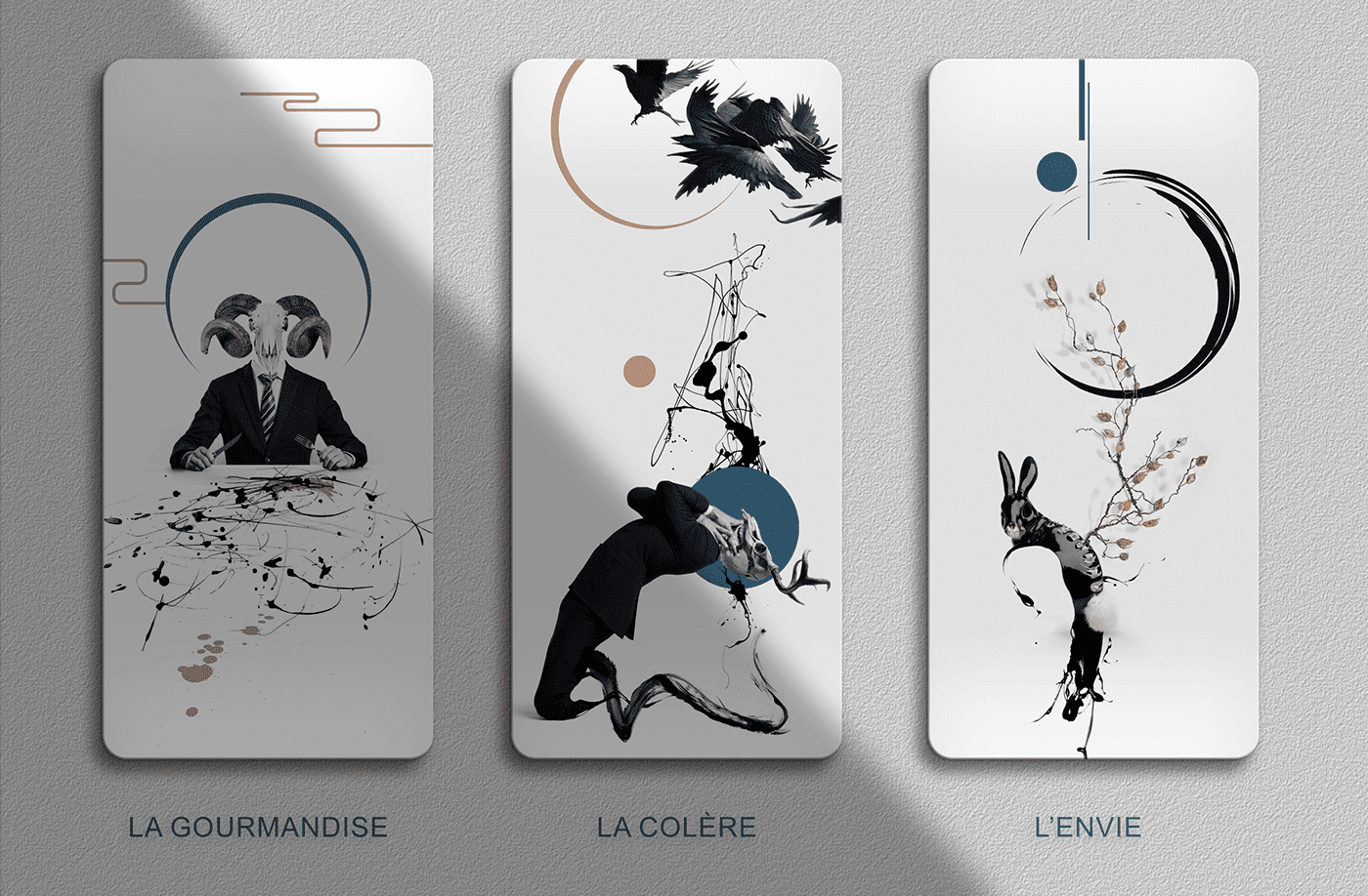 Création de trois affiches des péchés capitaux selon Thomas d’Aquin à l’aide de Photoshop.