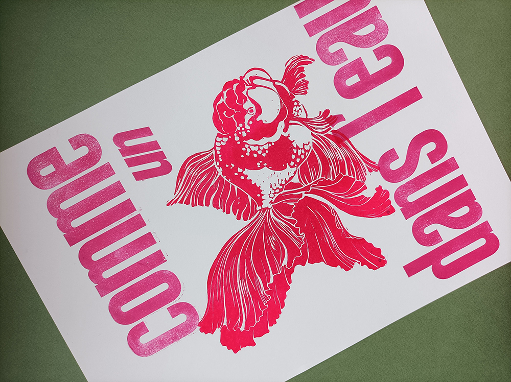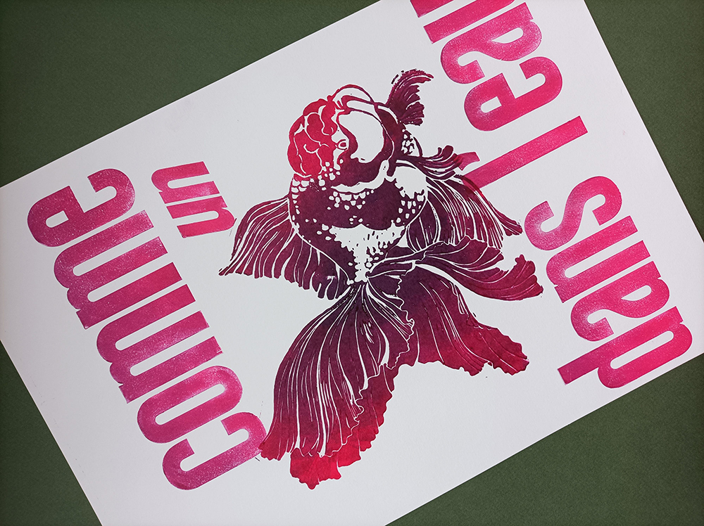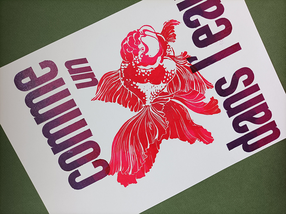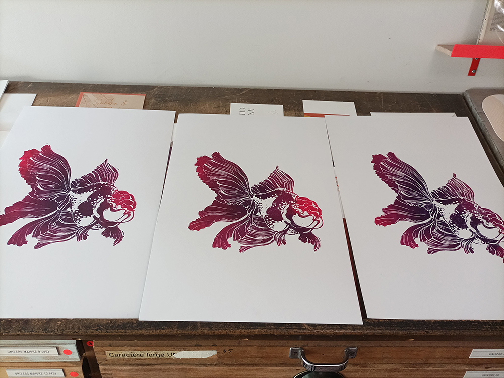 J’ai réalisé un projet personnel intégrant l’utilisation des techniques de typographie et d’impression linogravure à l’imprimerie artisanale Poppy Presse, et un projet de sculpture en plâtre à l’Espace Bourdelle Sculpture.
